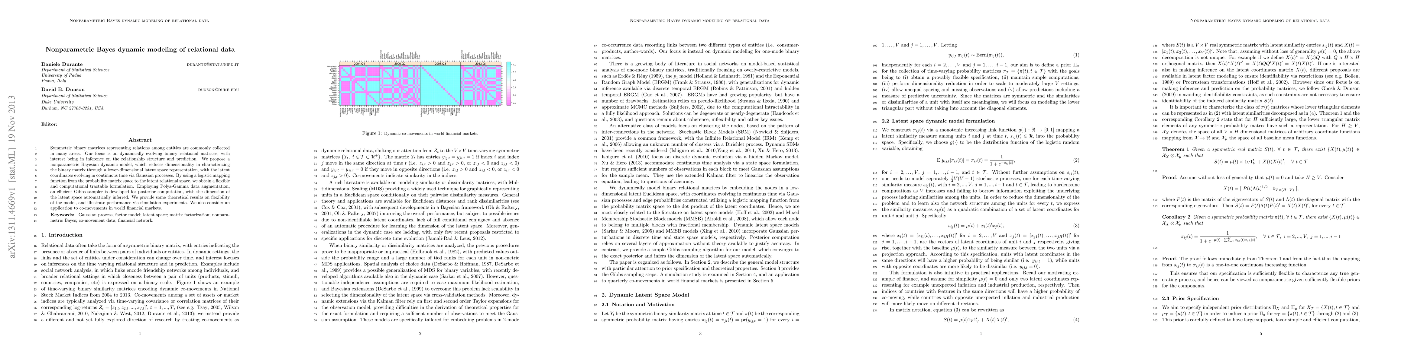 This paper proposes a nonparametric Bayesian dynamic model for evolving binary relational matrices, using a lower-dimensional latent space representation evolving via Gaussian processes. An efficient Gibbs sampler is developed for posterior computation, demonstrating flexibility and performance through simulations and an application to financial market co-movements.
