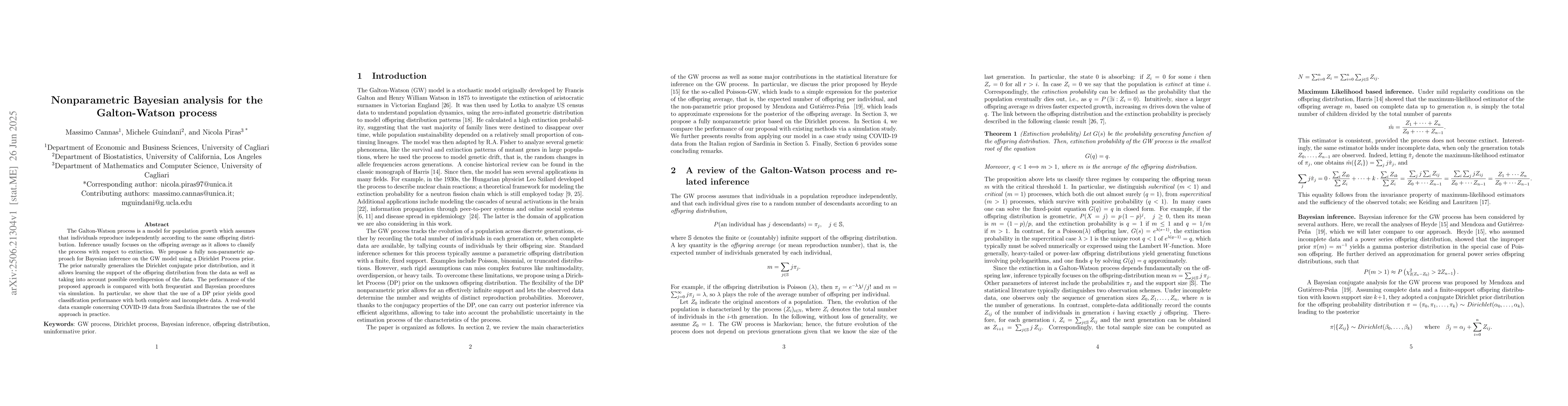 The paper introduces a novel application of the Dirichlet Process prior to Galton-Watson processes, including algorithms for inference with incomplete data and methods for estimating offspring support size.