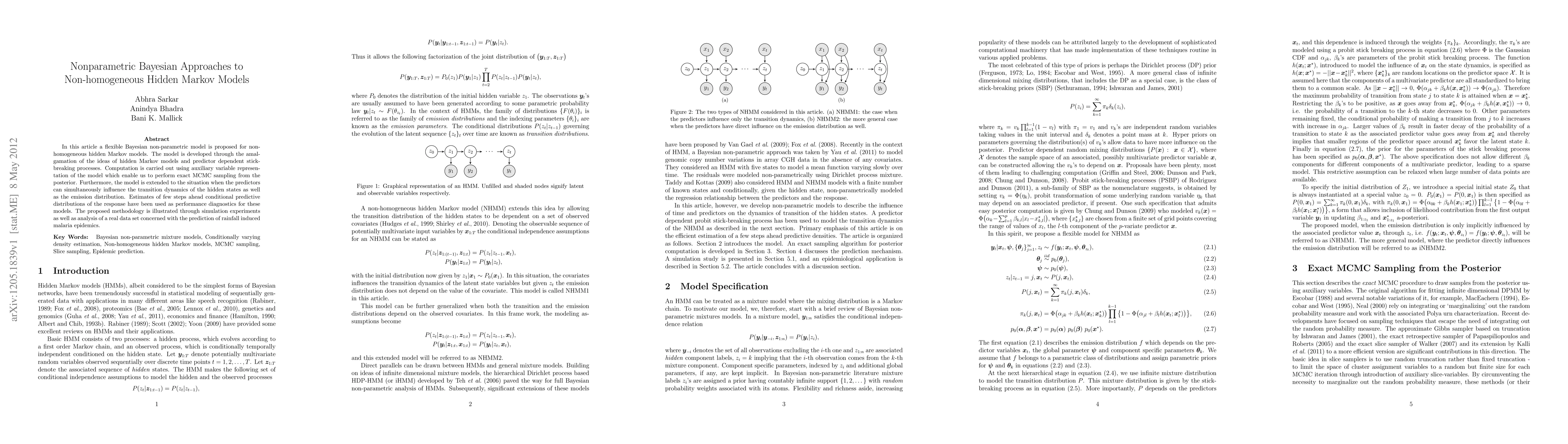 This paper proposes a flexible Bayesian nonparametric model for non-homogeneous hidden Markov models, combining hidden Markov models with predictor dependent stick-breaking processes. The model employs exact MCMC sampling and is extended to account for simultaneous predictor influences on transition dynamics and emission distribution, demonstrated through simulations and real-data analysis on malaria epidemics prediction.