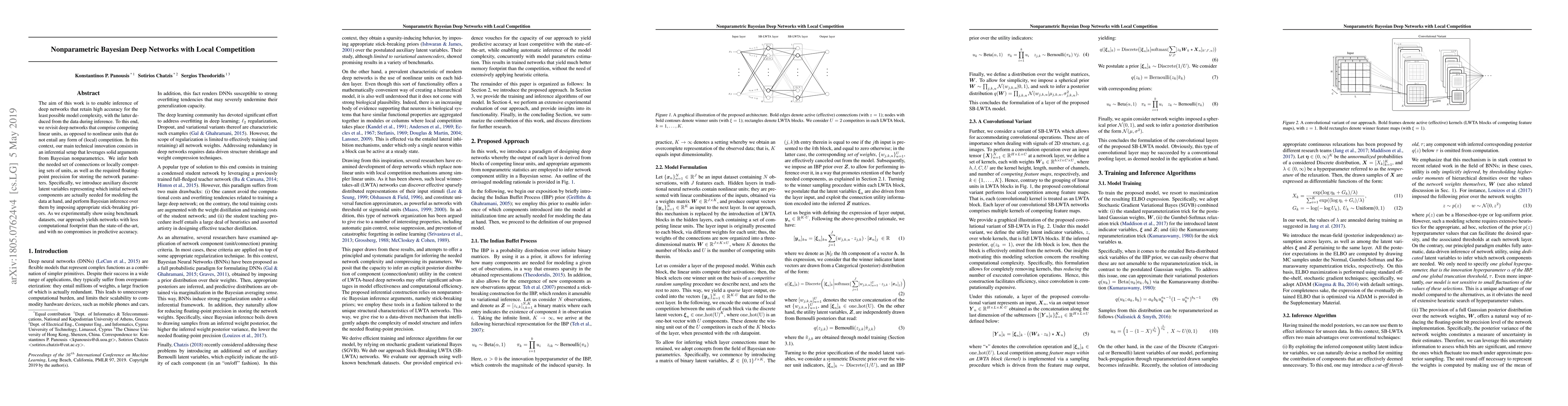 This paper proposes a nonparametric Bayesian deep network model using competing linear units and Bayesian nonparametrics to infer the necessary connections and precision for network parameters, resulting in networks that maintain high accuracy while minimizing model complexity. Experimental results demonstrate that the approach achieves lower computational costs compared to the state-of-the-art without sacrificing predictive performance.