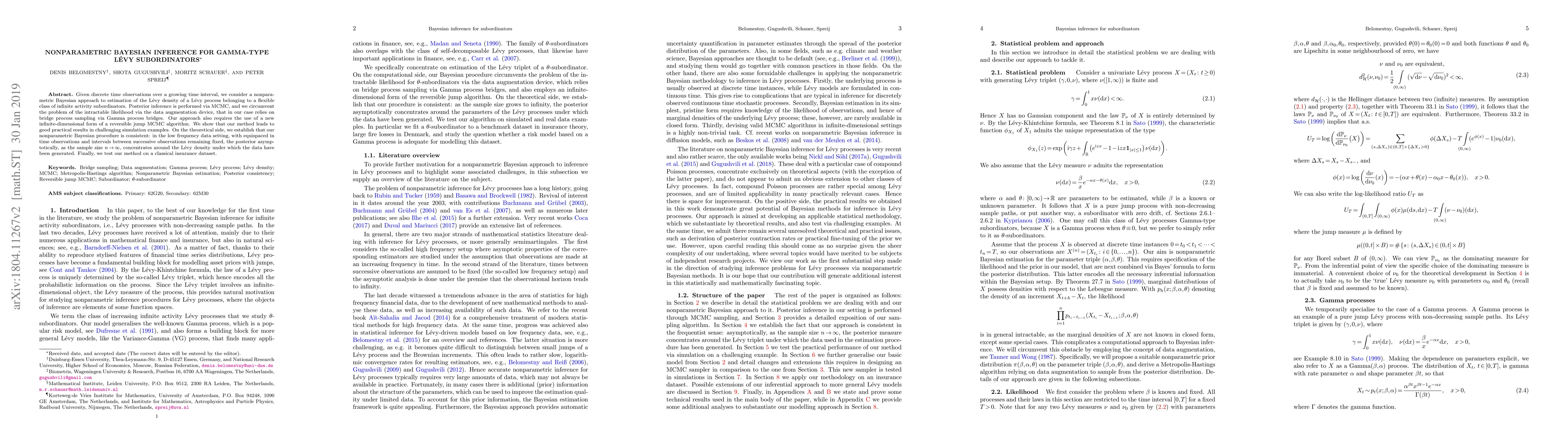 This paper proposes a nonparametric Bayesian method for estimating the Lévy density of Gamma-type Lévy subordinators using MCMC and data augmentation. The method is shown to be consistent and effective in simulations, and it is applied to a classical insurance dataset.