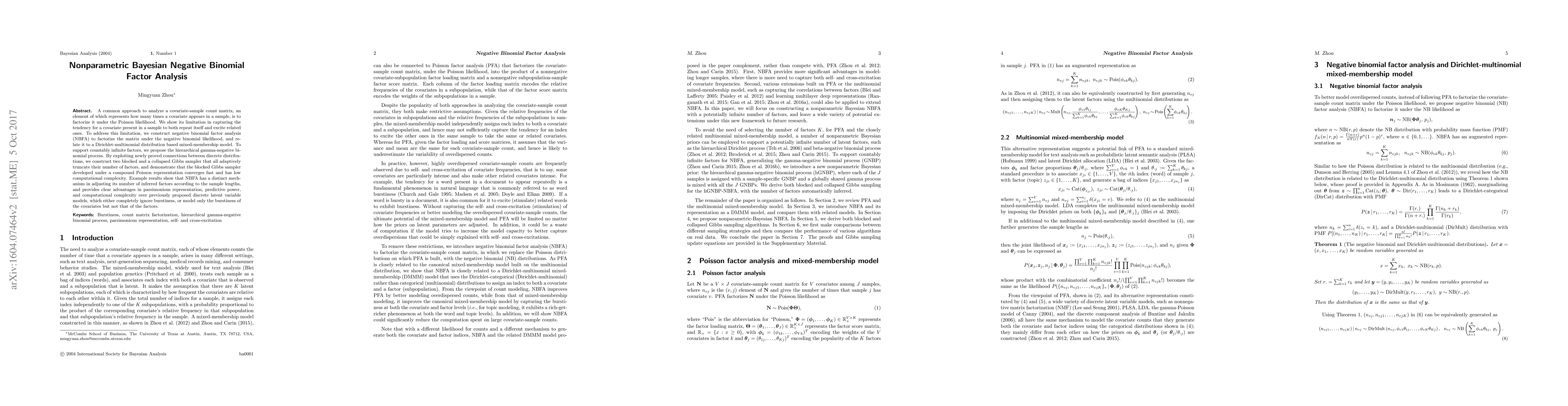 The paper introduces negative binomial factor analysis (NBFA) to better model count data by accounting for overdispersion, demonstrating its advantages over Poisson factor analysis in terms of parsimonious representation, predictive power, and computational efficiency. The proposed hierarchical gamma-negative binomial process supports countably infinite factors, and the developed Gibbs samplers show fast convergence and low complexity.