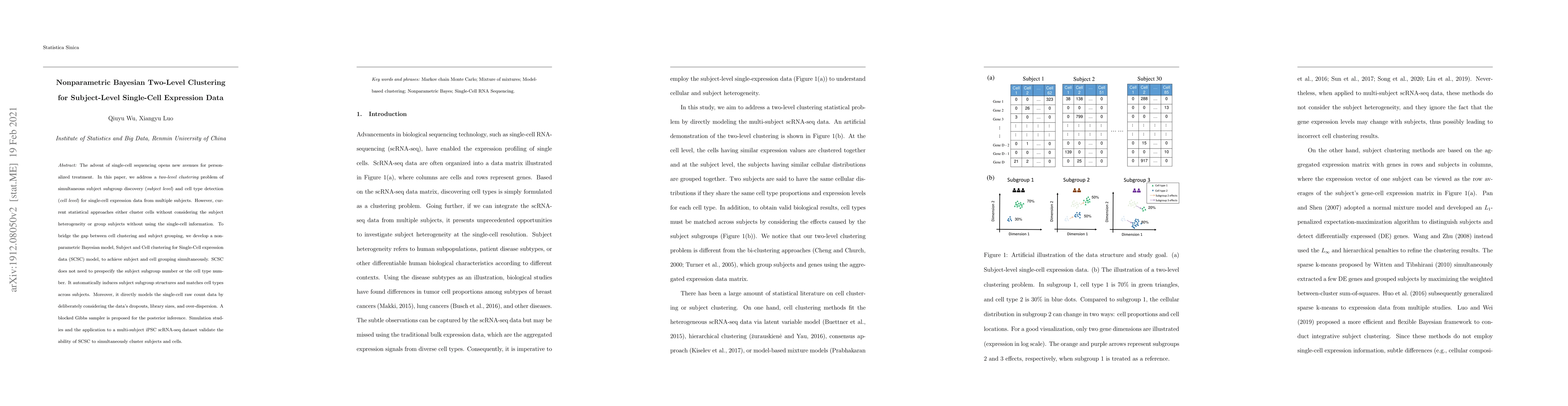This paper introduces a nonparametric Bayesian model, SCSC, for simultaneous subject subgroup discovery and cell type detection in single-cell expression data. The model handles subject heterogeneity and single-cell information without prespecifying subgroup or cell type numbers, and it accounts for data dropouts, library sizes, and over-dispersion.
