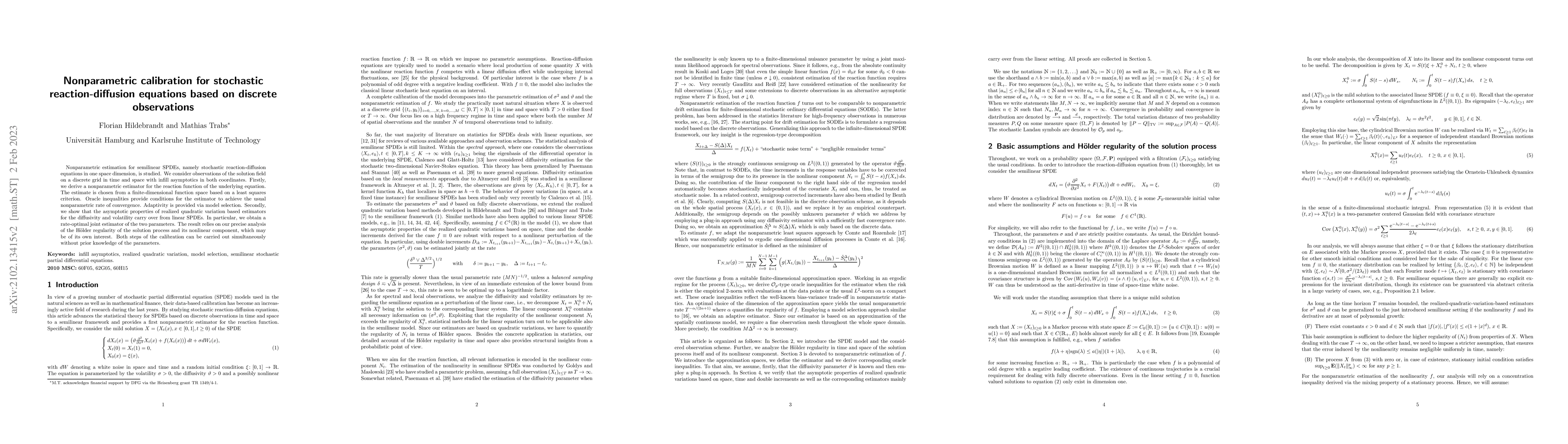 This paper develops nonparametric estimators for stochastic reaction-diffusion equations based on discrete observations. It presents a finite-dimensional estimator for the reaction function and achieves optimal convergence rates, while also providing a rate-optimal joint estimator for the diffusivity and volatility parameters.