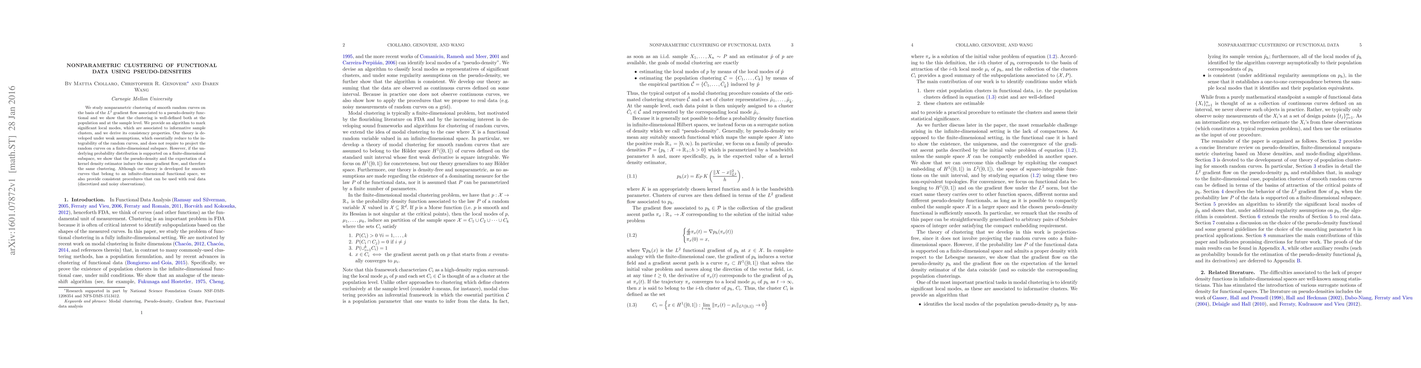 This paper introduces a nonparametric clustering method for functional data using pseudo-densities, providing an algorithm to identify informative clusters and demonstrating its consistency properties.