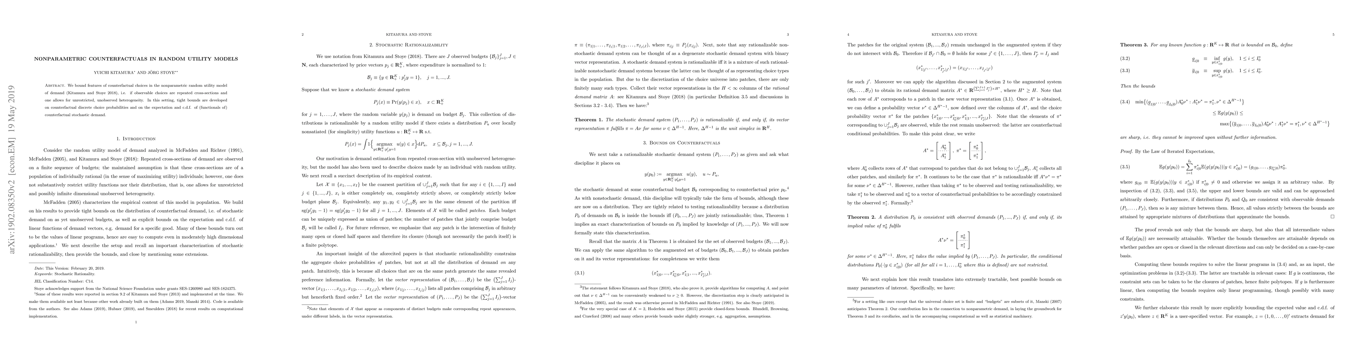 The research uses a nonparametric analysis of random utility models to test stochastic rationality and predict counterfactual choice probabilities.