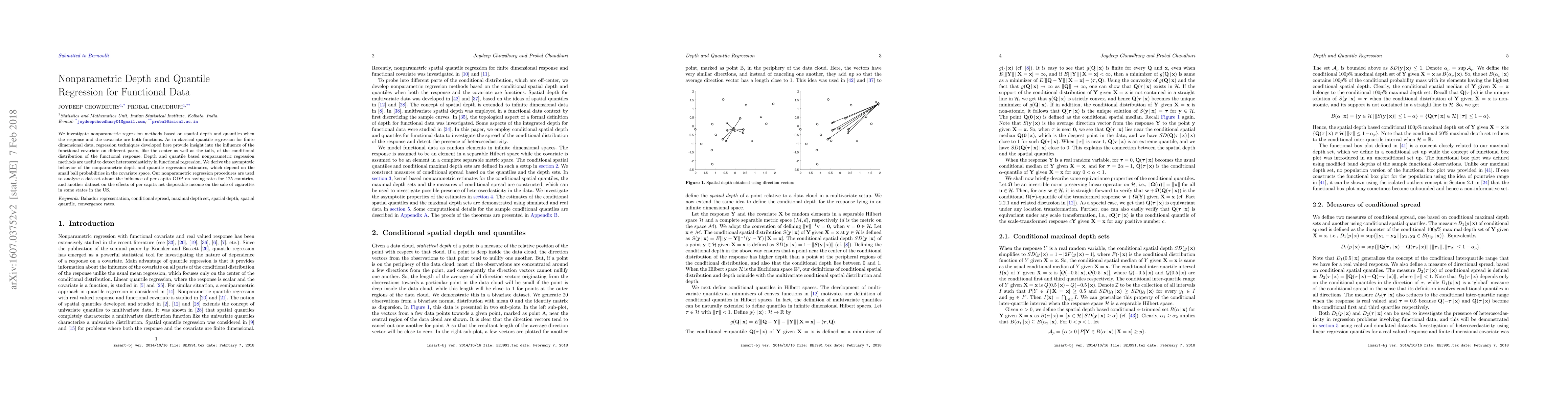 This paper develops nonparametric regression techniques based on spatial depth and quantiles for functional data, providing insights into the influence of functional covariates on the conditional distribution's center and tails. The methods are applied to datasets examining the impact of economic indicators on saving rates and cigarette sales.