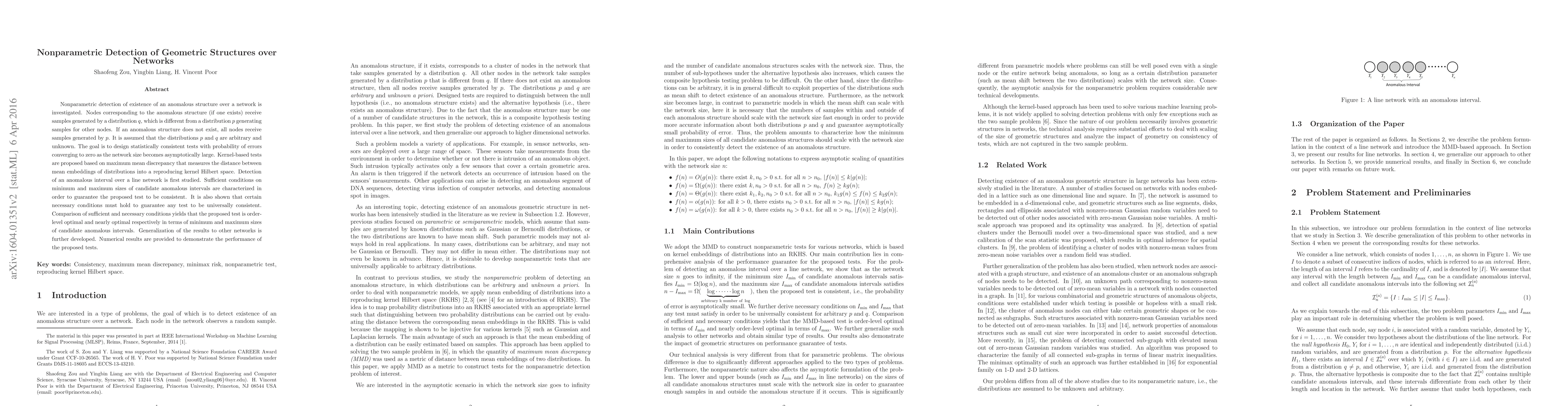This paper proposes a nonparametric method to detect anomalous structures in networks by analyzing samples from different distributions, with sufficient conditions for consistency and optimality.