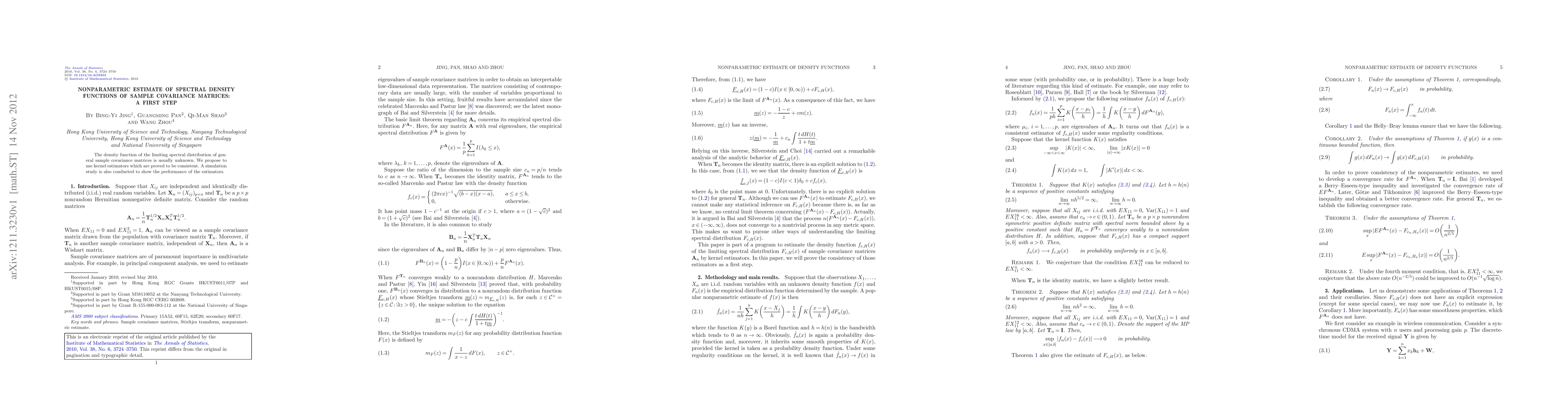 This paper proposes kernel estimators for nonparametrically estimating the spectral density functions of sample covariance matrices, proving their consistency. A simulation study demonstrates the effectiveness of these estimators.