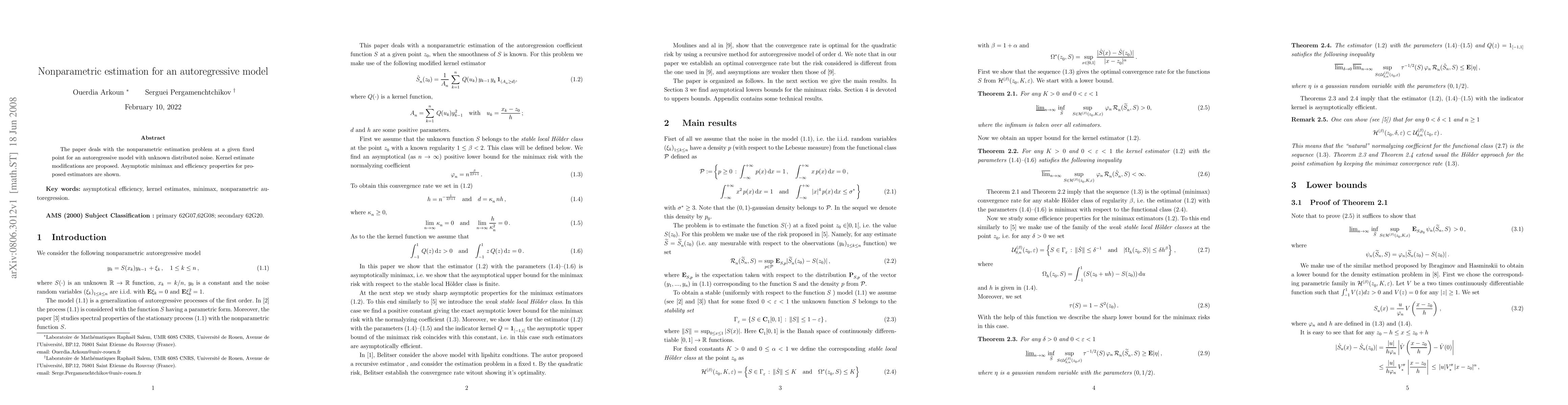 This paper proposes modified kernel estimators for nonparametrically estimating an autoregressive model with unknown distributed noise. It demonstrates the asymptotic minimax and efficiency properties of these estimators.