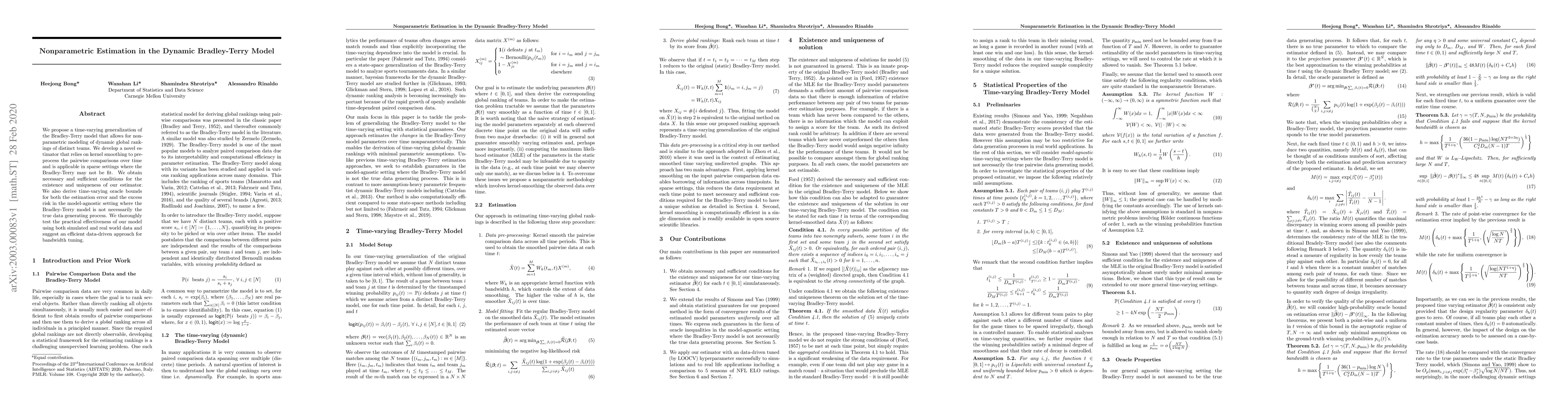 This paper proposes a nonparametric estimator for a time-varying generalization of the Bradley-Terry model, using kernel smoothing for dynamic global rankings of teams. It provides conditions for the estimator's existence and uniqueness, and derives oracle bounds for estimation error and excess risk, validated through simulations and real-world data.