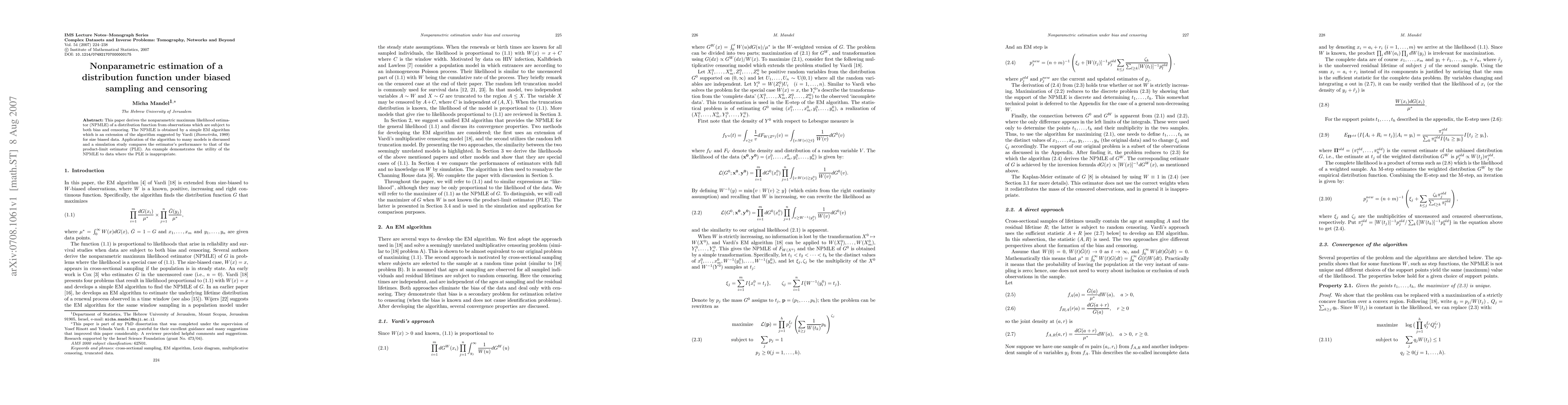 This paper introduces a nonparametric maximum likelihood estimator that can handle biased sampling and censoring, providing a more accurate alternative to the product-limit estimator in certain scenarios.