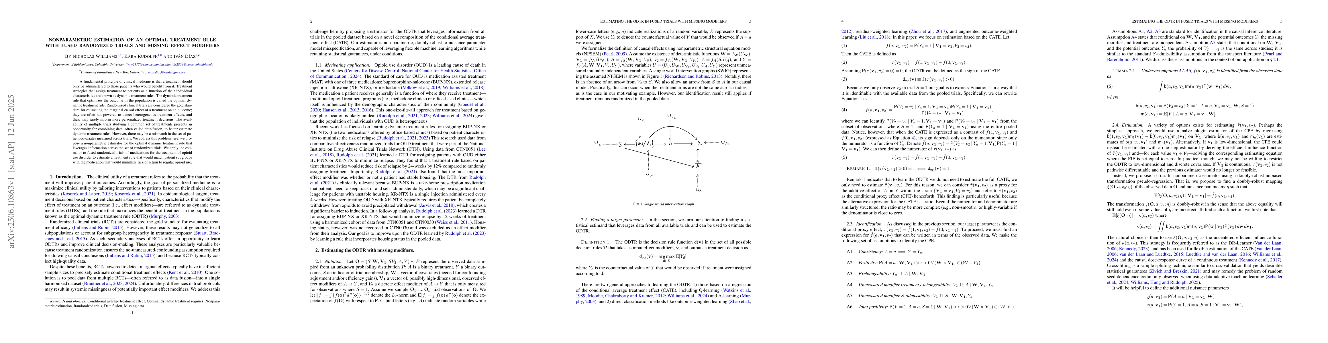 A new method estimates an optimal treatment rule based on multiple randomized trials with missing data, aiming to personalize opioid treatment for patients at risk of relapse. The approach uses nonparametric estimation to fuse data from different trials and identify the best medication match for each patient subgroup.