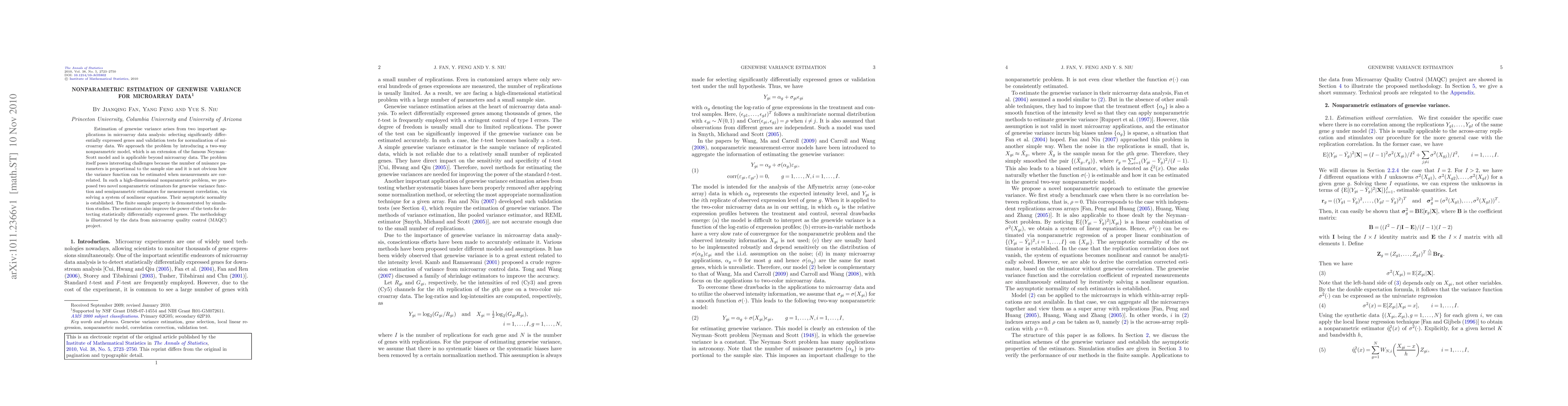 This paper introduces nonparametric estimators for genewise variance in microarray data analysis, addressing challenges in high-dimensional settings. The proposed estimators improve the detection of differentially expressed genes and are validated through simulation studies and the MAQC project data.