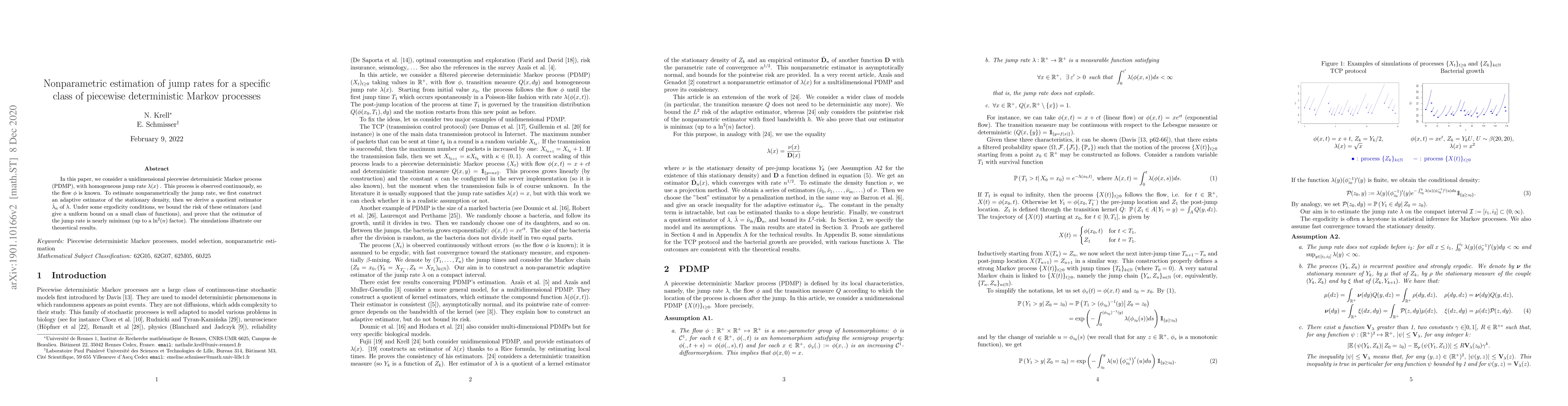 This paper develops an adaptive nonparametric estimator for the jump rate of a piecewise deterministic Markov process, providing uniform risk bounds and proving near minimaxity. Simulation results demonstrate the estimator's performance.