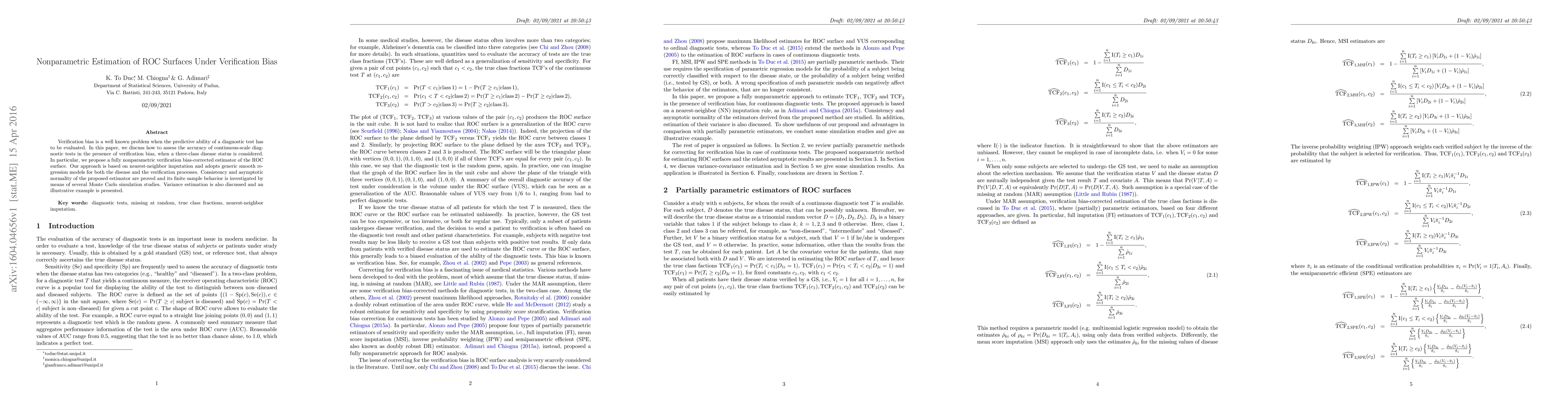This paper proposes a nonparametric estimator to assess the accuracy of continuous-scale diagnostic tests under verification bias, using nearest-neighbor imputation and smooth regression models. The estimator's consistency and asymptotic normality are proven, and its performance is validated through Monte Carlo simulations.