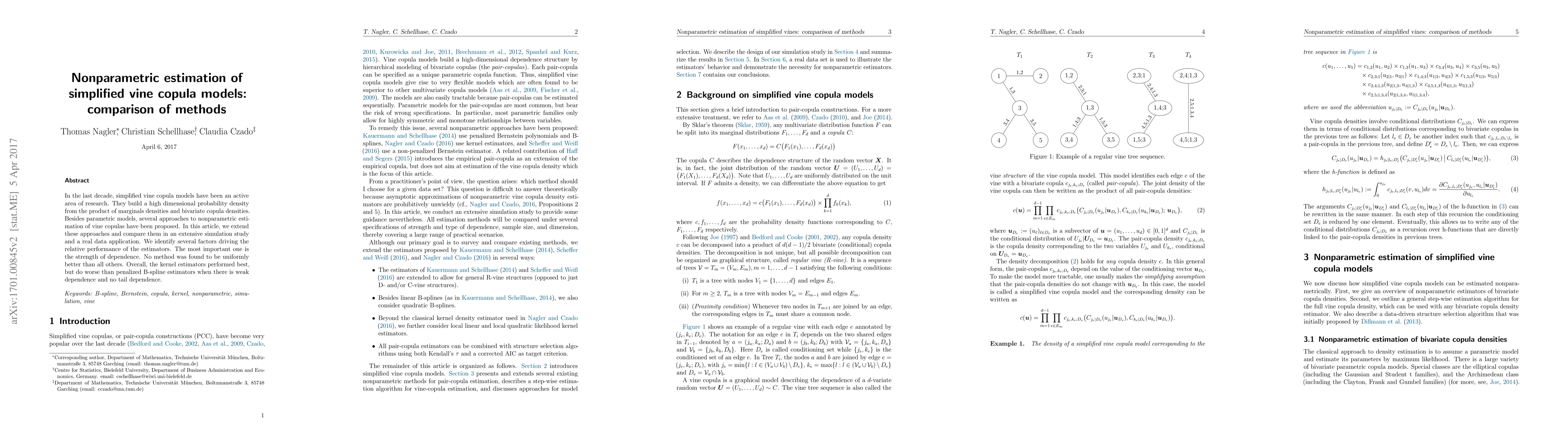 This paper extends nonparametric estimation methods for simplified vine copula models and compares their performance through simulations and real data analysis. The study finds that kernel estimators generally perform best, but penalized B-spline estimators outperform them in cases of weak dependence and absence of tail dependence.