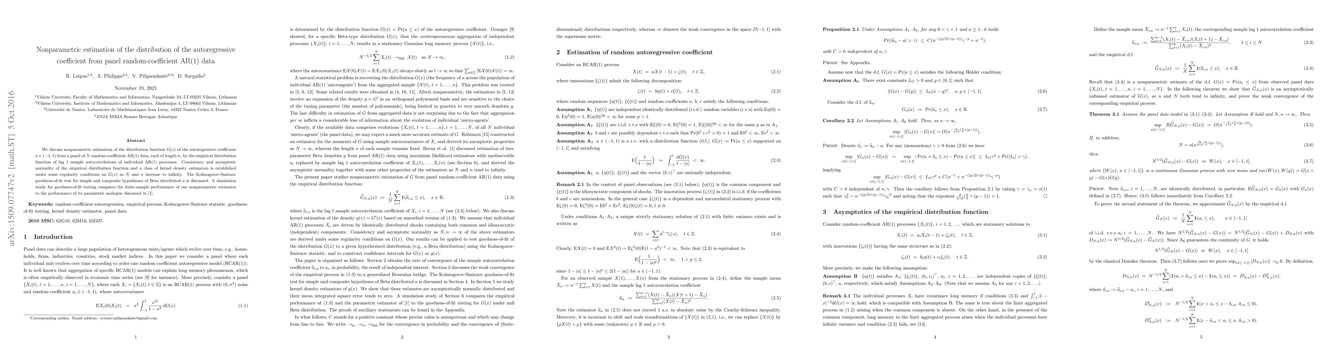 This paper proposes a method for nonparametrically estimating the distribution of the autoregressive coefficient from panel random-coefficient AR(1) data using the empirical distribution function of lag 1 sample autocorrelations. It establishes consistency and asymptotic normality of the estimator and discusses the Kolmogorov-Smirnov test for fitting Beta distributions, comparing its performance via simulation against a parametric analogue.