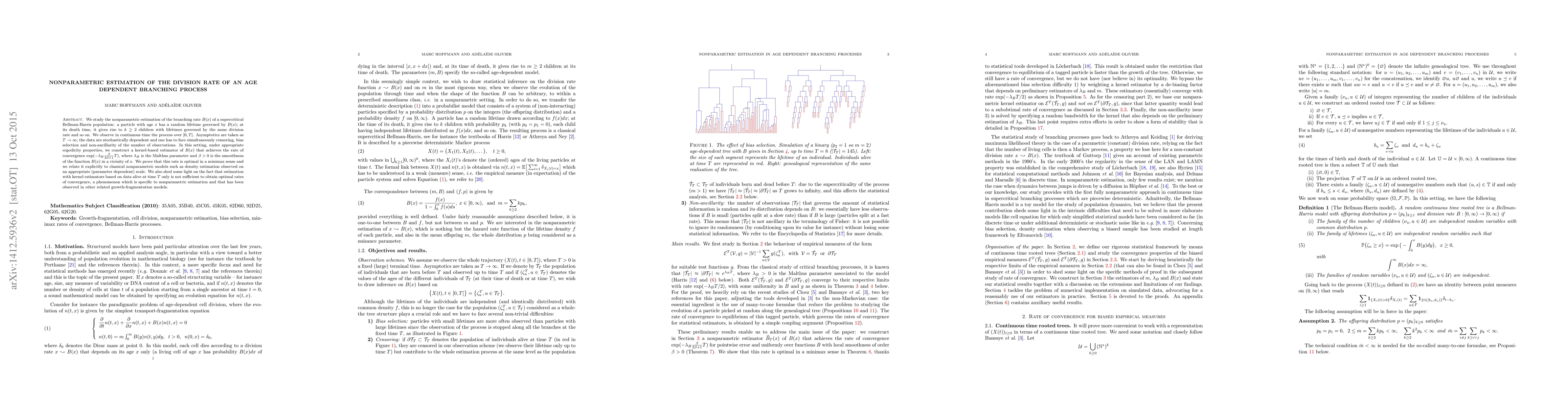 We study the nonparametric estimation of the branching rate $B(x)$ of a supercritical Bellman-Harris population: a particle with age $x$ has a random lifetime governed by $B(x)$; at its death time, it gives rise to $k \geq 2$ children with lifetimes governed by the same division rate and so on. We observe in continuous time the process over $[0,T]$. Asymptotics are taken as $T \rightarrow \infty$; the data are stochastically dependent and one has to face simultaneously censoring, bias selection and non-ancillarity of the number of observations. In this setting, under appropriate ergodicity properties, we construct a kernel-based estimator of $B(x)$ that achieves the rate of convergence $\exp(-\lambda_B \frac{\beta}{2\beta+1}T)$, where $\lambda_B$ is the Malthus parameter and $\beta >0$ is the smoothness of the function $B(x)$ in a vicinity of $x$. We prove that this rate is optimal in a minimax sense and we relate it explicitly to classical nonparametric models such as density estimation observed on an appropriate (parameter dependent) scale. We also shed some light on the fact that estimation with kernel estimators based on data alive at time $T$ only is not sufficient to obtain optimal rates of convergence, a phenomenon which is specific to nonparametric estimation and that has been observed in other related growth-fragmentation models.