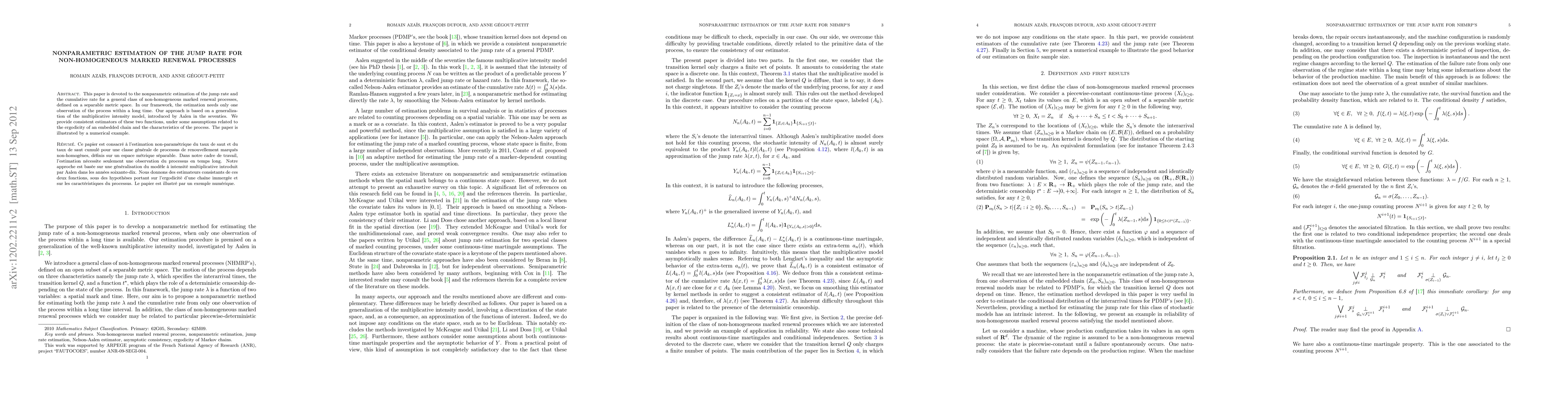 This paper develops a method for estimating jump rates in non-homogeneous marked renewal processes using only one observation, providing consistent estimators under certain assumptions.