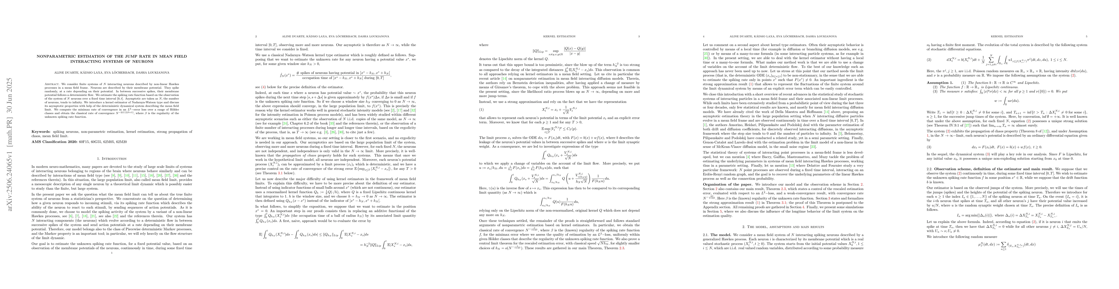 We consider finite systems of $N$ interacting neurons described by non-linear Hawkes processes in a mean field frame. Neurons are described by their membrane potential. They spike randomly, at a rate depending on their potential. In between successive spikes, their membrane potential follows a deterministic flow. We estimate the spiking rate function based on the observation of the system of $N$ neurons over a fixed time interval $[0,t]$. Asymptotic are taken as $N,$ the number of neurons, tends to infinity. We introduce a kernel estimator of Nadaraya-Watson type and discuss its asymptotic properties with help of the deterministic dynamical system describing the mean field limit. We compute the minimax rate of convergence in an $L^2 -$error loss over a range of H\"older classes and obtain the classical rate of convergence $ N^{ - 2\beta/ ( 2 \beta + 1)} , $ where $ \beta $ is the regularity of the unknown spiking rate function.