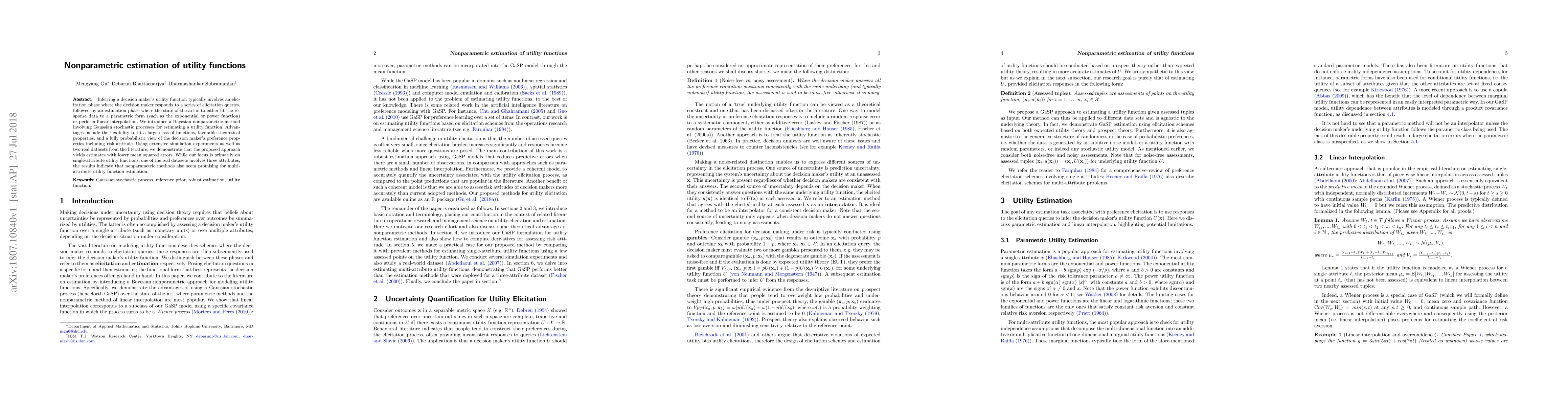A new Bayesian nonparametric method using Gaussian stochastic processes is proposed for estimating utility functions, outperforming traditional methods in terms of mean squared error.