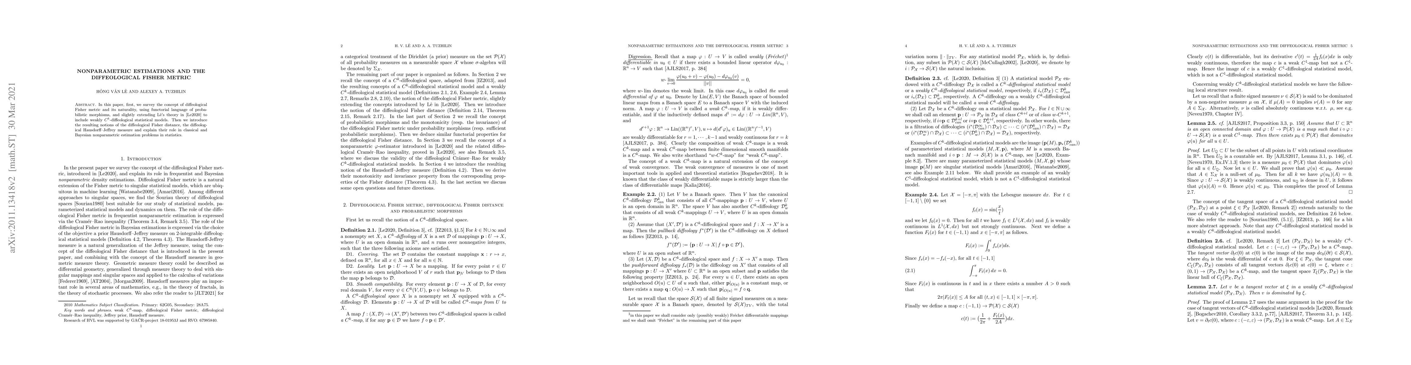 Researchers introduce a new framework for nonparametric estimation using diffeological Fisher metric, which extends traditional statistical models to include weakly $C^k$-diffeological statistics.