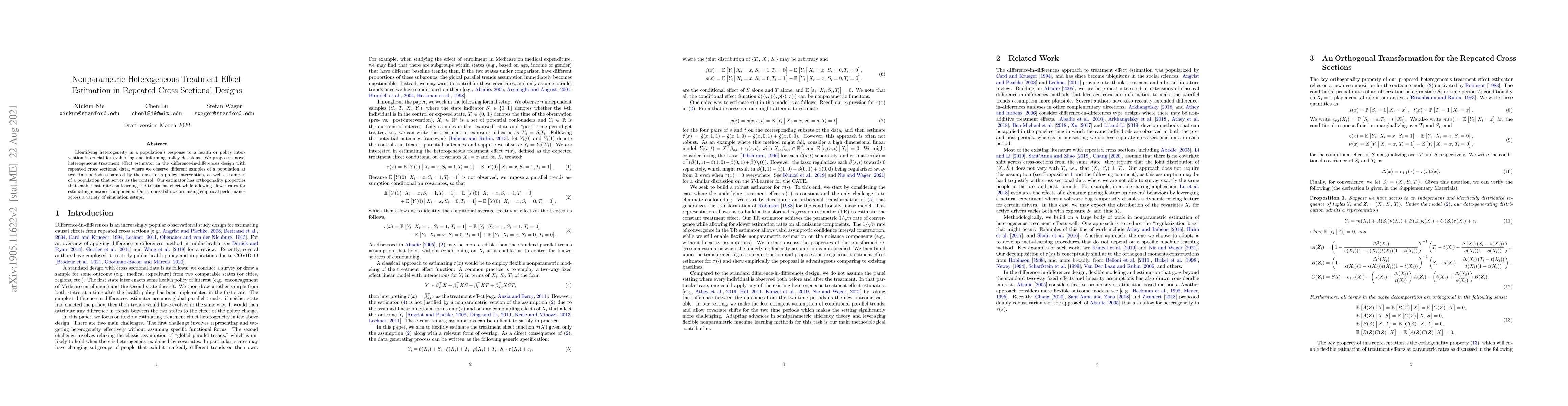 This paper proposes a novel nonparametric estimator for heterogeneous treatment effects in repeated cross-sectional designs, leveraging difference-in-differences methodology. The estimator efficiently separates treatment effects from nuisance components, demonstrating strong empirical performance in simulations.