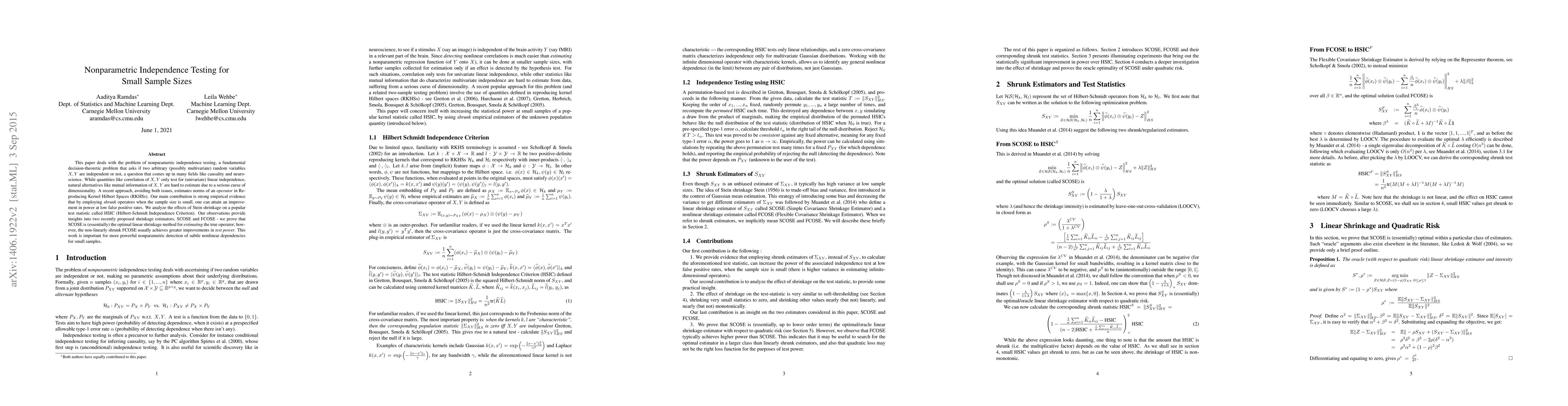 This paper investigates nonparametric independence testing for small sample sizes, focusing on improving the power of tests while maintaining low false positive rates. It demonstrates that shrunk operators, particularly FCOSE, enhance test power for detecting nonlinear dependencies compared to traditional methods.