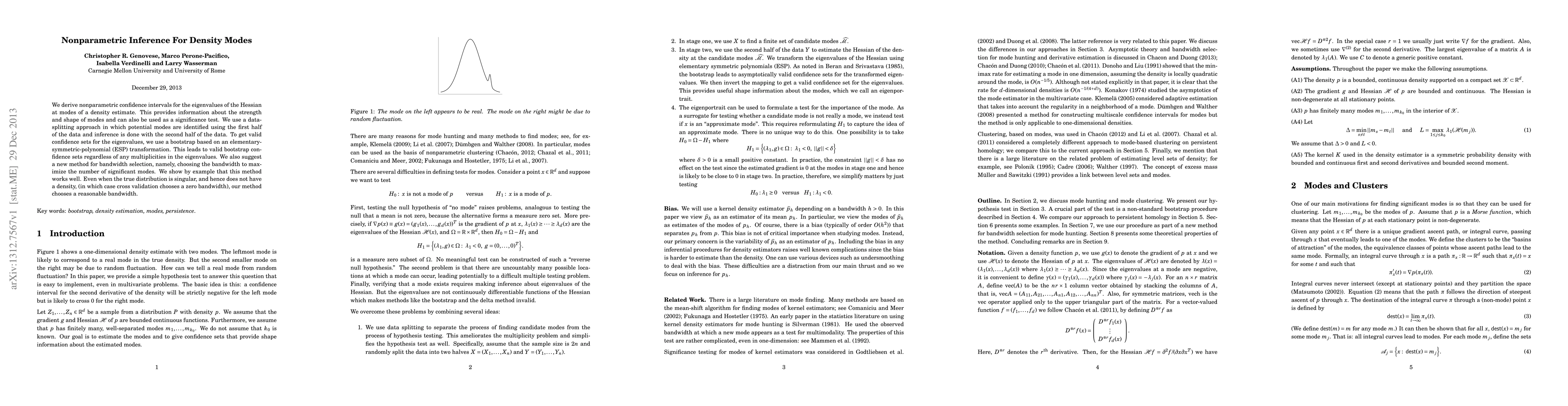 We derive nonparametric confidence intervals for the eigenvalues of the Hessian at modes of a density estimate. This provides information about the strength and shape of modes and can also be used as a significance test. We use a data-splitting approach in which potential modes are identified using the first half of the data and inference is done with the second half of the data. To get valid confidence sets for the eigenvalues, we use a bootstrap based on an elementary-symmetric-polynomial (ESP) transformation. This leads to valid bootstrap confidence sets regardless of any multiplicities in the eigenvalues. We also suggest a new method for bandwidth selection, namely, choosing the bandwidth to maximize the number of significant modes. We show by example that this method works well. Even when the true distribution is singular, and hence does not have a density, (in which case cross validation chooses a zero bandwidth), our method chooses a reasonable bandwidth.