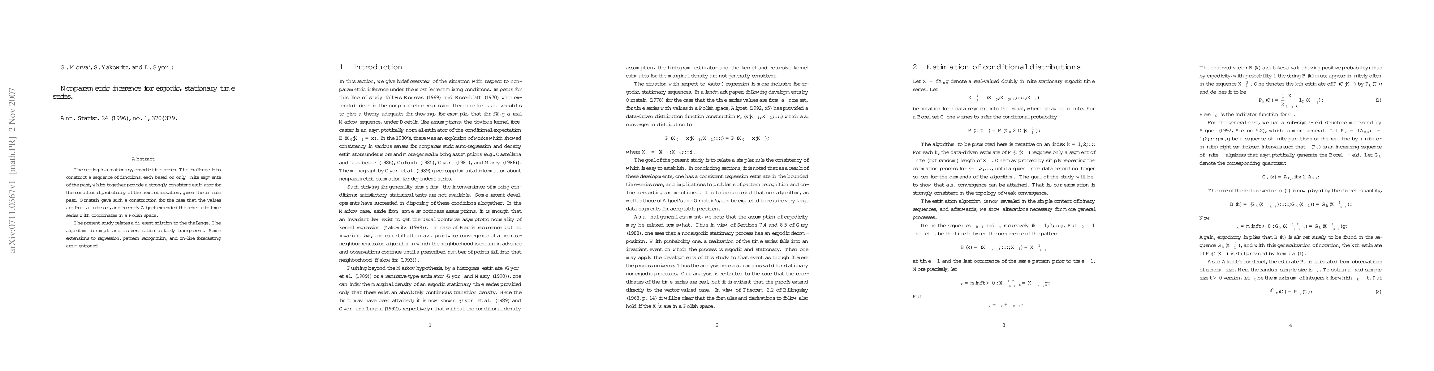 This paper proposes a new nonparametric inference method for stationary, ergodic time series, aiming to construct a sequence of functions that provide a strongly consistent estimator for the conditional probability of the next observation. The algorithm is straightforward and extends to regression, pattern recognition, and on-line forecasting.