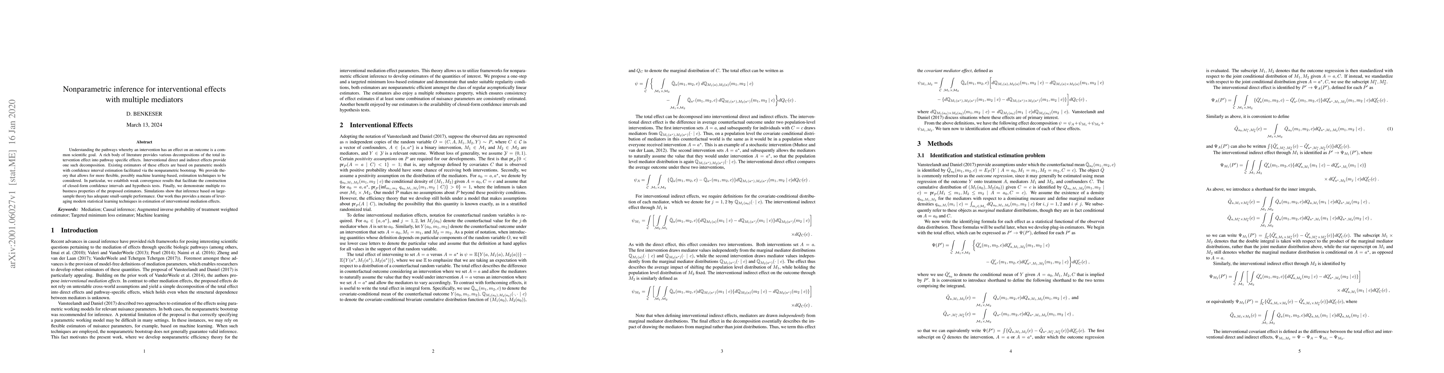 Understanding the pathways whereby an intervention has an effect on an outcome is a common scientific goal. A rich body of literature provides various decompositions of the total intervention effect into pathway specific effects. Interventional direct and indirect effects provide one such decomposition. Existing estimators of these effects are based on parametric models with confidence interval estimation facilitated via the nonparametric bootstrap. We provide theory that allows for more flexible, possibly machine learning-based, estimation techniques to be considered. In particular, we establish weak convergence results that facilitate the construction of closed-form confidence intervals and hypothesis tests. Finally, we demonstrate multiple robustness properties of the proposed estimators. Simulations show that inference based on large-sample theory has adequate small-sample performance. Our work thus provides a means of leveraging modern statistical learning techniques in estimation of interventional mediation effects.