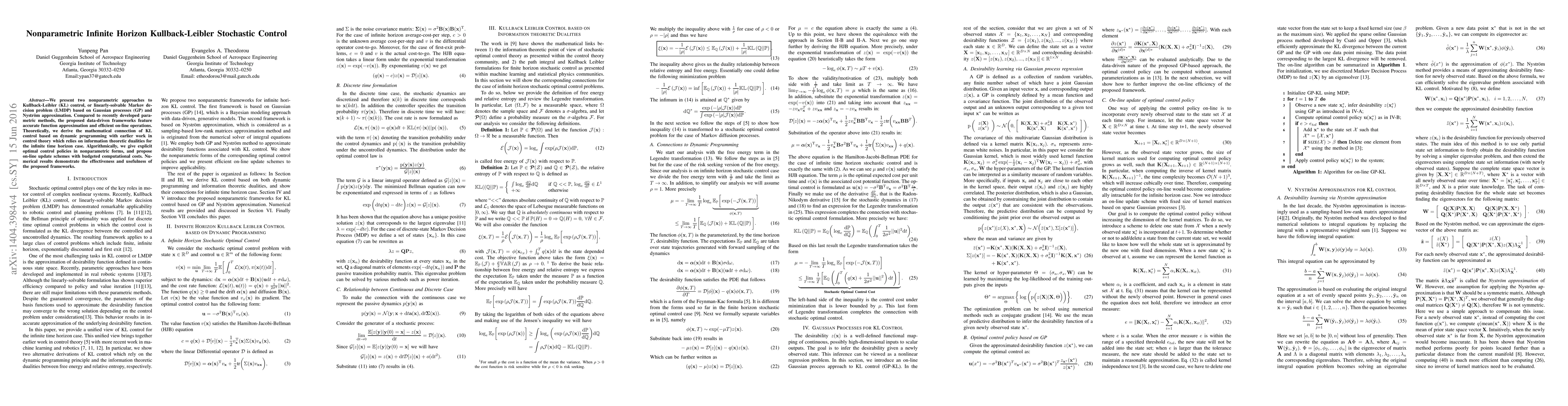 This paper introduces two nonparametric methods for Kullback-Leibler control using Gaussian processes and Nyström approximation, offering accurate function approximation and efficient online operations compared to parametric approaches. It also establishes theoretical connections between KL control and control theory through information theoretic dualities.