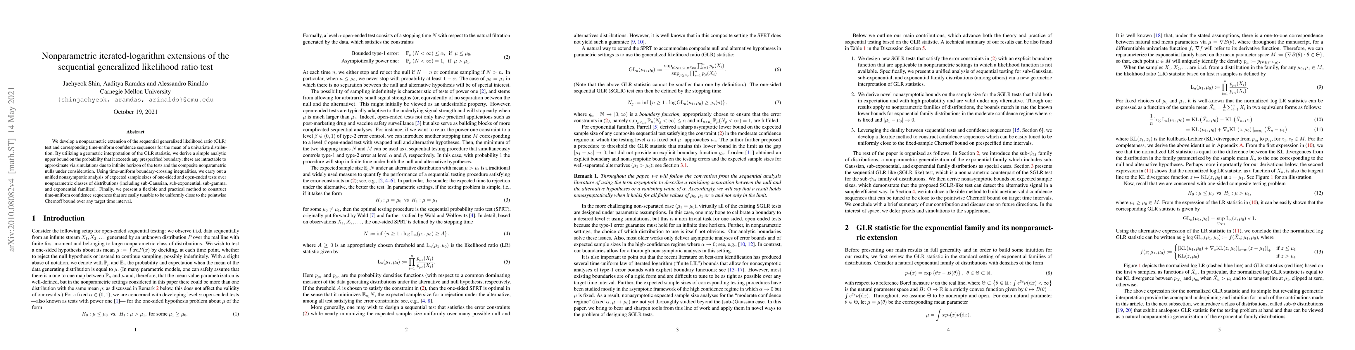This paper develops a nonparametric extension of the sequential generalized likelihood ratio test and constructs time-uniform confidence sequences for the mean of a univariate distribution. It provides a nonasymptotic analysis of expected sample sizes and presents a practical method for constructing sequences that are close to the Chernoff bound.