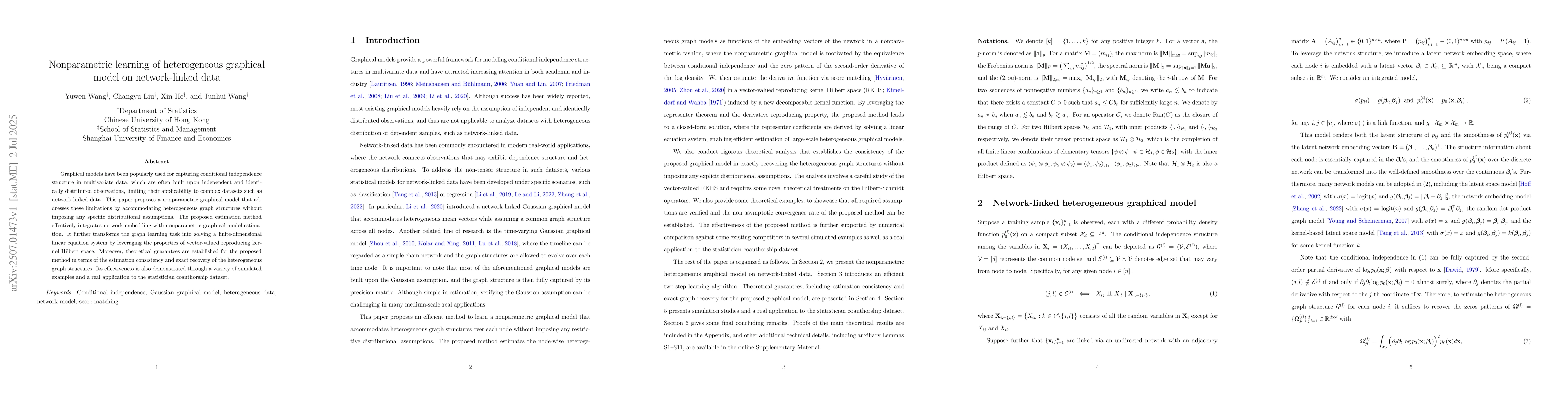 Graphical models have been popularly used for capturing conditional independence structure in multivariate data, which are often built upon independent and identically distributed observations, limiting their applicability to complex datasets such as network-linked data. This paper proposes a nonparametric graphical model that addresses these limitations by accommodating heterogeneous graph structures without imposing any specific distributional assumptions. The proposed estimation method effectively integrates network embedding with nonparametric graphical model estimation. It further transforms the graph learning task into solving a finite-dimensional linear equation system by leveraging the properties of vector-valued reproducing kernel Hilbert space. Moreover, theoretical guarantees are established for the proposed method in terms of the estimation consistency and exact recovery of the heterogeneous graph structures. Its effectiveness is also demonstrated through a variety of simulated examples and a real application to the statistician coauthorship dataset.