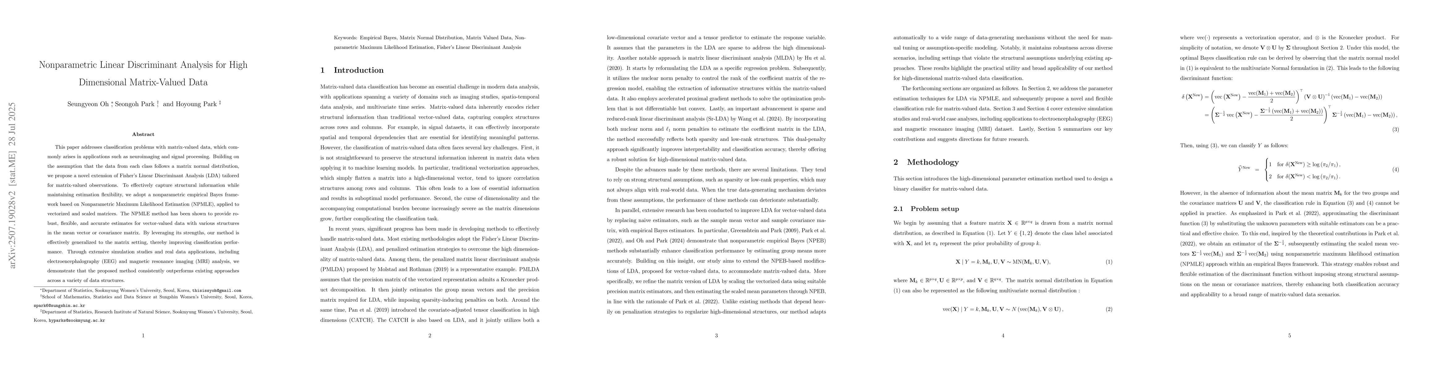 This paper addresses classification problems with matrix-valued data, which commonly arises in applications such as neuroimaging and signal processing. Building on the assumption that the data from each class follows a matrix normal distribution, we propose a novel extension of Fisher's Linear Discriminant Analysis (LDA) tailored for matrix-valued observations. To effectively capture structural information while maintaining estimation flexibility, we adopt a nonparametric empirical Bayes framework based on Nonparametric Maximum Likelihood Estimation (NPMLE), applied to vectorized and scaled matrices. The NPMLE method has been shown to provide robust, flexible, and accurate estimates for vector-valued data with various structures in the mean vector or covariance matrix. By leveraging its strengths, our method is effectively generalized to the matrix setting, thereby improving classification performance. Through extensive simulation studies and real data applications, including electroencephalography (EEG) and magnetic resonance imaging (MRI) analysis, we demonstrate that the proposed method consistently outperforms existing approaches across a variety of data structures.