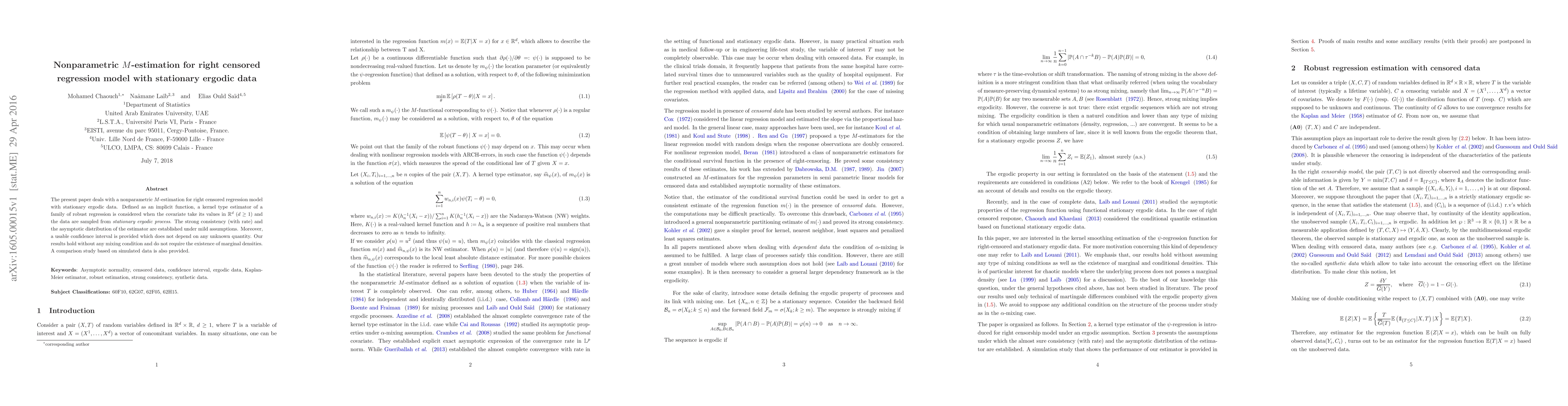 This paper develops a kernel-type nonparametric M-estimation for right censored regression models with stationary ergodic data. The proposed estimator is shown to be strongly consistent and asymptotically normal, with a confidence interval that does not rely on unknown quantities.