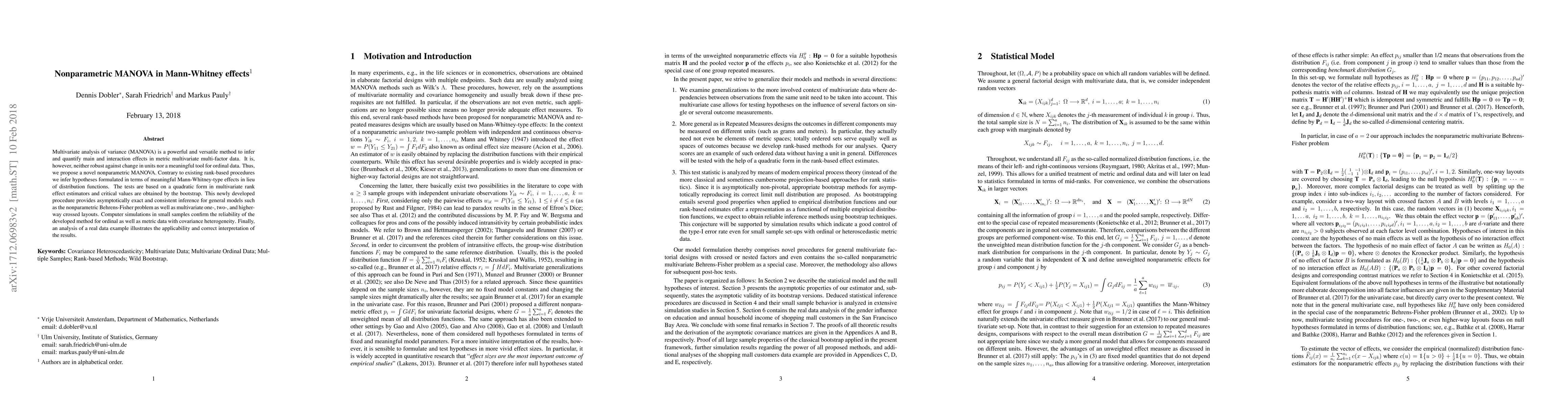 This paper proposes a novel nonparametric MANOVA method that uses Mann-Whitney-type effects instead of distribution functions, providing robust inference for both ordinal and metric data. The method employs a quadratic form in multivariate rank effect estimators and bootstrap critical values, demonstrating reliability in simulations and real data analysis.