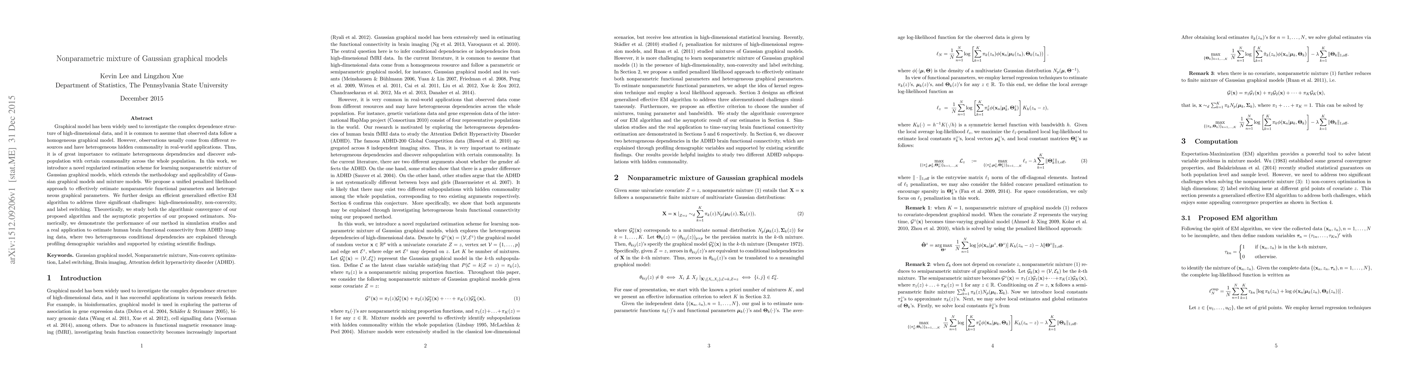 This paper introduces a novel regularized estimation scheme for nonparametric mixture of Gaussian graphical models to capture heterogeneous dependencies in high-dimensional data. It proposes a unified penalized likelihood approach and an efficient generalized EM algorithm to address high-dimensionality, non-convexity, and label switching issues, demonstrating its effectiveness through simulations and an application to ADHD imaging data.