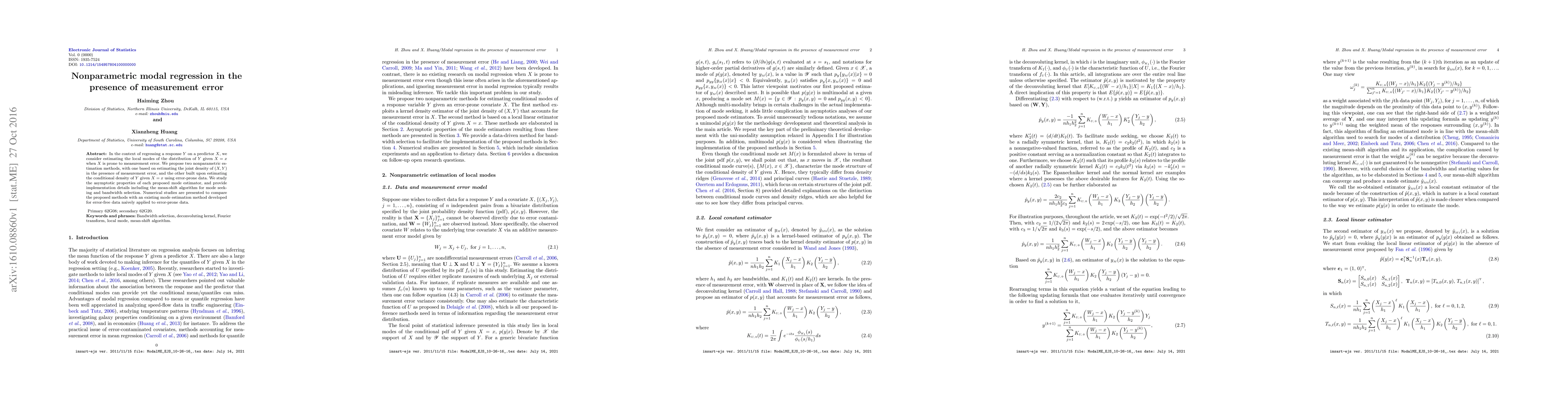 This paper proposes two nonparametric methods for estimating the local modes of $Y$ given $X$ in the presence of measurement error in $X$. It studies the asymptotic properties of the proposed estimators and compares them to an existing method via numerical studies.
