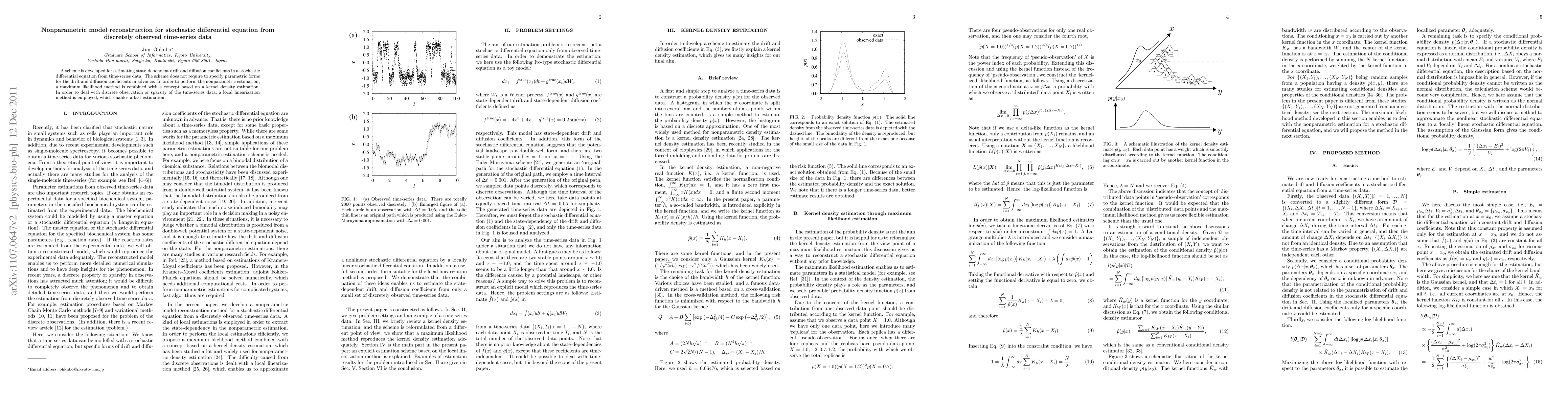 A scheme is developed for estimating state-dependent drift and diffusion coefficients in a stochastic differential equation from time-series data. The scheme does not require to specify parametric forms for the drift and diffusion coefficients in advance. In order to perform the nonparametric estimation, a maximum likelihood method is combined with a concept based on a kernel density estimation. In order to deal with discrete observation or sparsity of the time-series data, a local linearization method is employed, which enables a fast estimation.