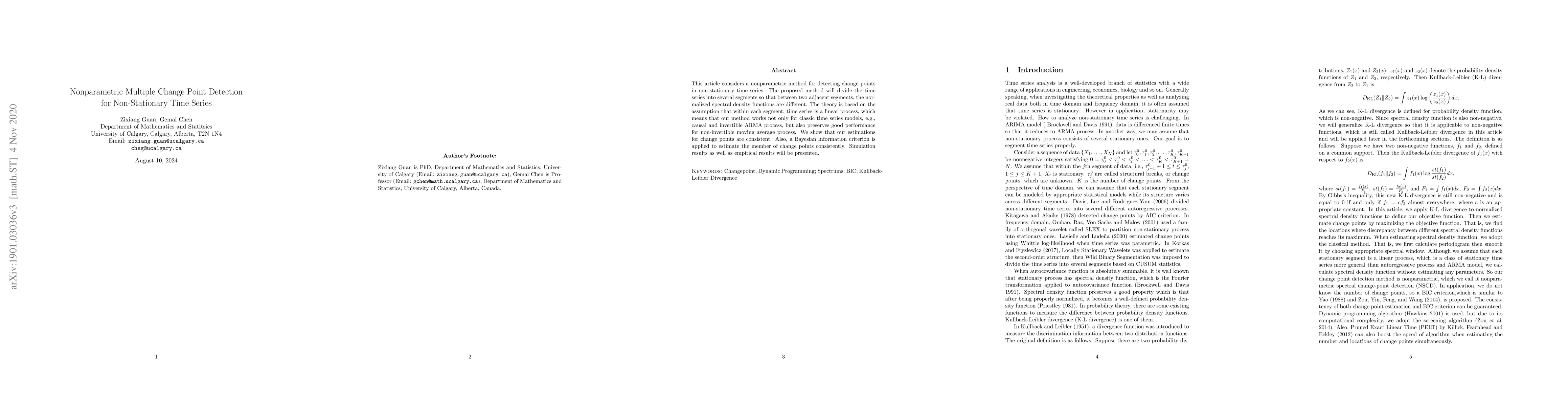 This article considers a nonparametric method for detecting change points in non-stationary time series. The proposed method will divide the time series into several segments so that between two adjacent segments, the normalized spectral density functions are different. The theory is based on the assumption that within each segment, time series is a linear process, which means that our method works not only for classic time series models, e.g., causal and invertible ARMA process, but also preserves good performance for non-invertible moving average process. We show that our estimations for change points are consistent. Also, a Bayesian information criterion is applied to estimate the member of change points consistently. Simulation results as well as empirical results will be presented.