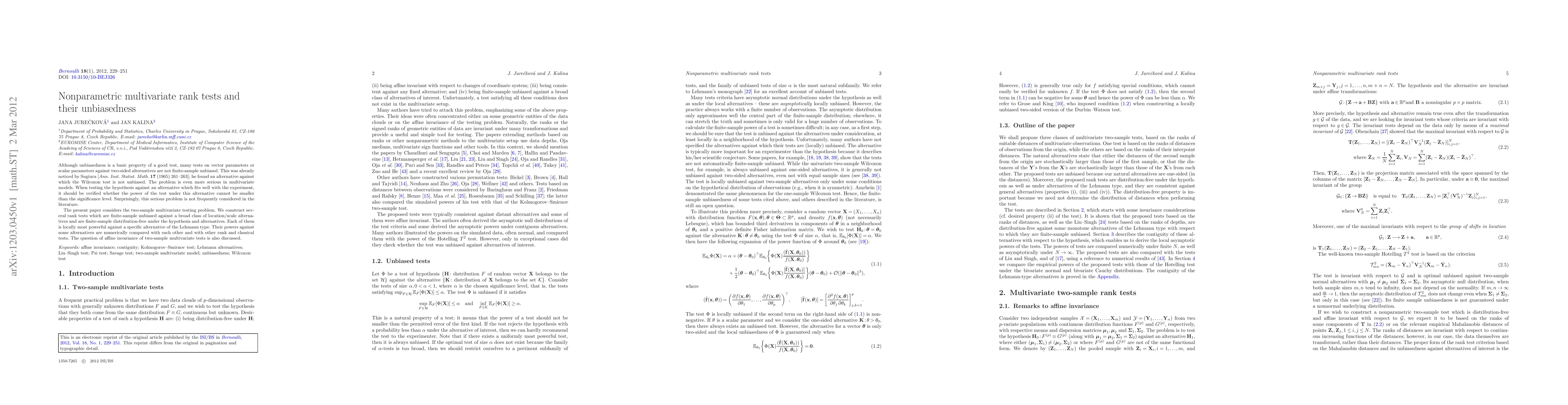 This paper constructs finite-sample unbiased nonparametric multivariate rank tests for two-sample location/scale alternatives, ensuring they are distribution-free under the null hypothesis. It also compares their powers against various alternatives and discusses their affine invariance.