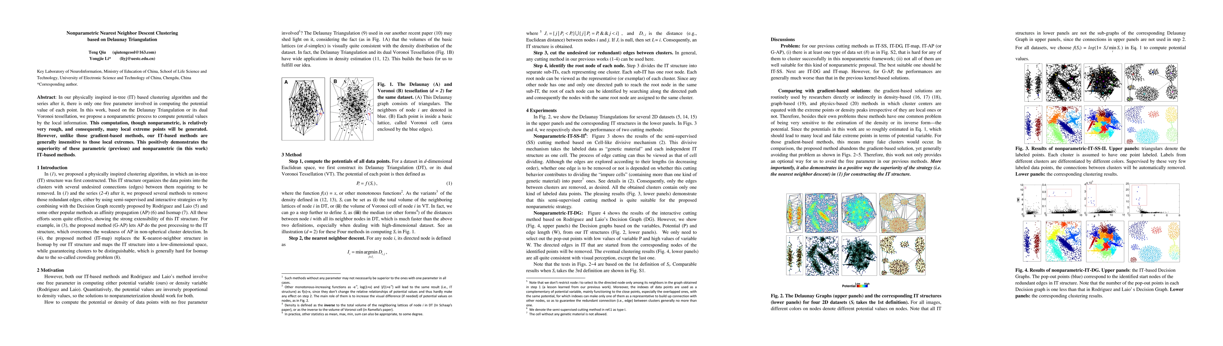 In our physically inspired in-tree (IT) based clustering algorithm and the series after it, there is only one free parameter involved in computing the potential value of each point. In this work, based on the Delaunay Triangulation or its dual Voronoi tessellation, we propose a nonparametric process to compute potential values by the local information. This computation, though nonparametric, is relatively very rough, and consequently, many local extreme points will be generated. However, unlike those gradient-based methods, our IT-based methods are generally insensitive to those local extremes. This positively demonstrates the superiority of these parametric (previous) and nonparametric (in this work) IT-based methods.