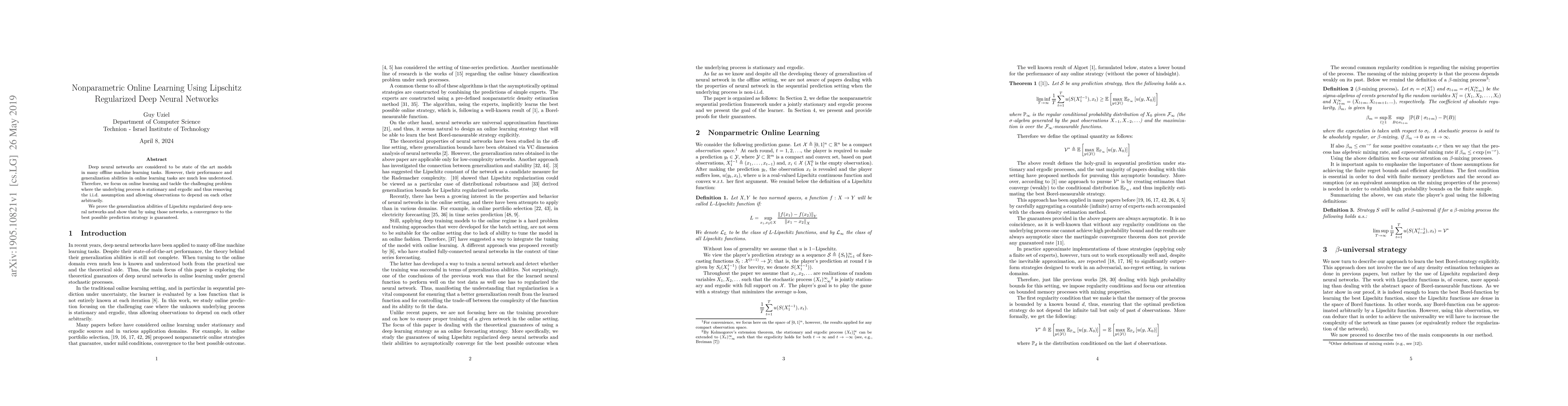 This paper investigates the application of Lipschitz regularized deep neural networks for nonparametric online learning, where data points are not independent and identically distributed. It proves the generalization capabilities of these networks, ensuring convergence to the optimal prediction strategy.