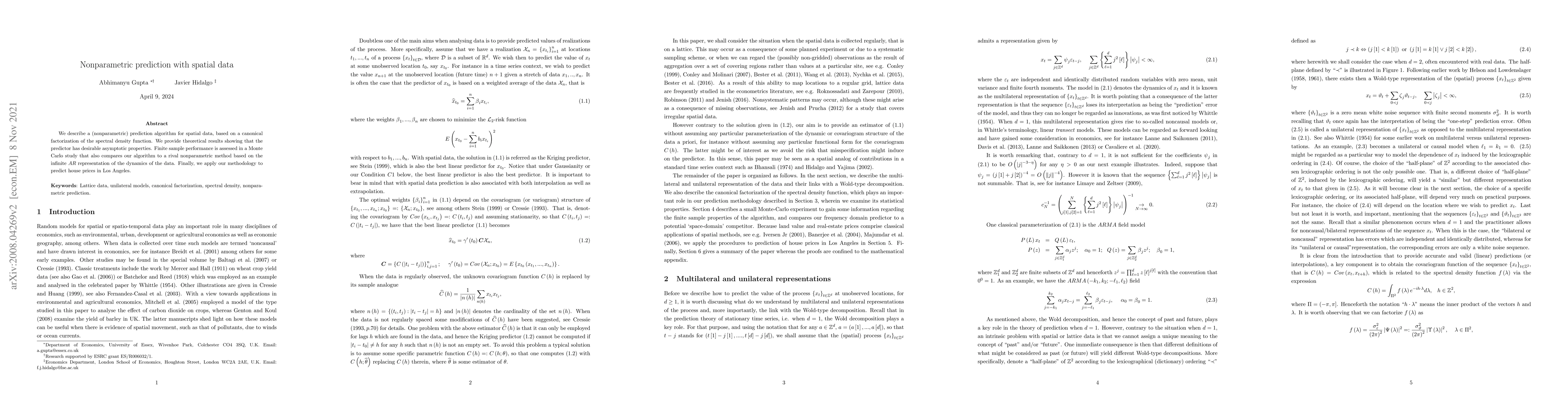 This paper presents a nonparametric prediction algorithm for spatial data that uses canonical factorization of the spectral density function, offering desirable asymptotic properties and good finite sample performance in predicting house prices in Los Angeles.