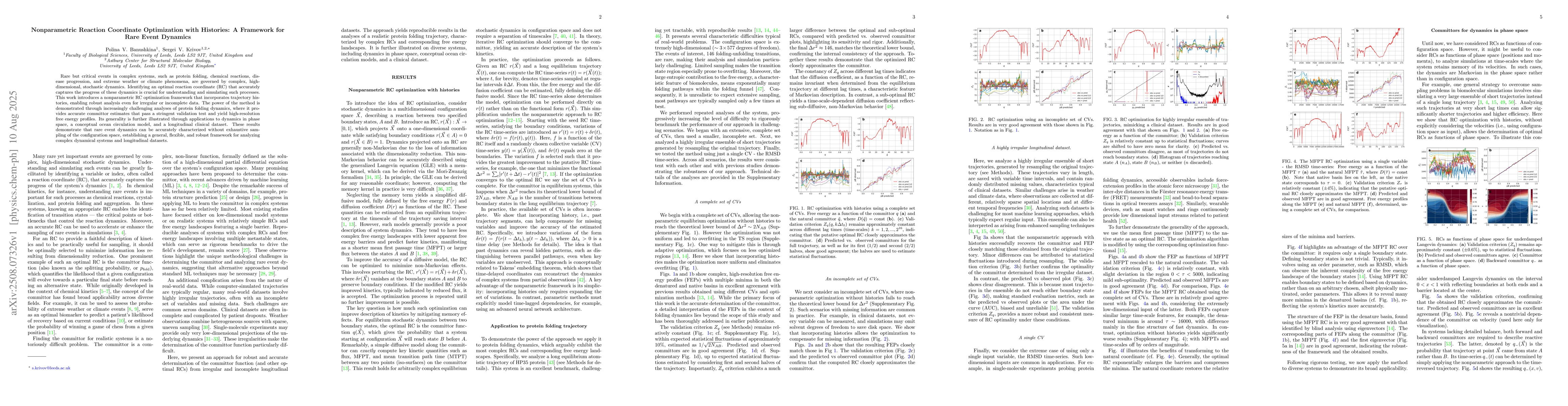 The research introduces a nonparametric reaction coordinate optimization framework that incorporates trajectory histories, enabling robust analysis for irregular or incomplete data in complex, high-dimensional, stochastic dynamics. The method is demonstrated on protein folding dynamics, phase space, a conceptual ocean circulation model, and a clinical longitudinal dataset.