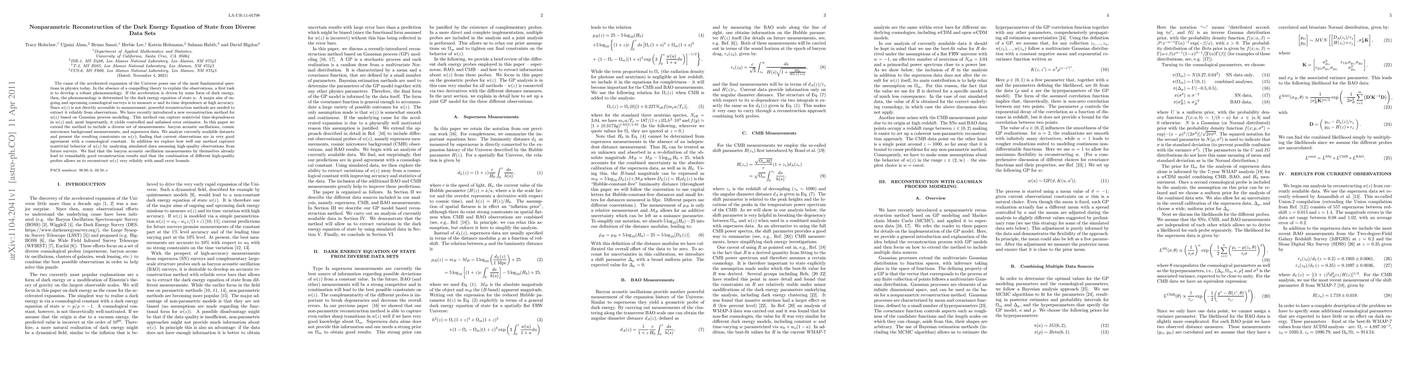 This paper introduces a new nonparametric reconstruction method using Gaussian processes to determine the dark energy equation of state w(z) from diverse cosmological data sets, including baryon acoustic oscillations, cosmic microwave background measurements, and supernova data. The method provides controlled and unbiased error estimates, showing that current observations align well with a cosmological constant model, while also demonstrating its potential for future high-quality surveys.