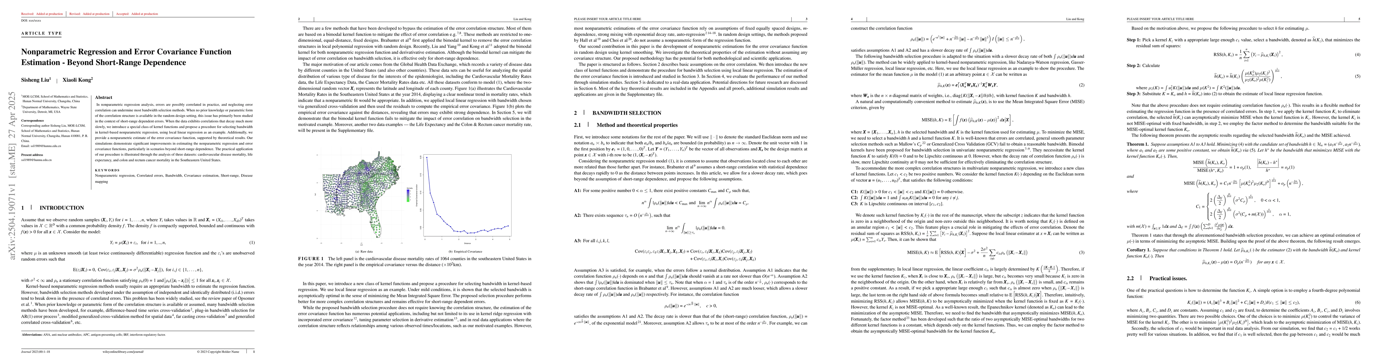 This research is significant for nonparametric regression analysis where error correlation is present, offering a method to estimate regression functions and error covariance functions, particularly beneficial for scenarios beyond short-range dependence.