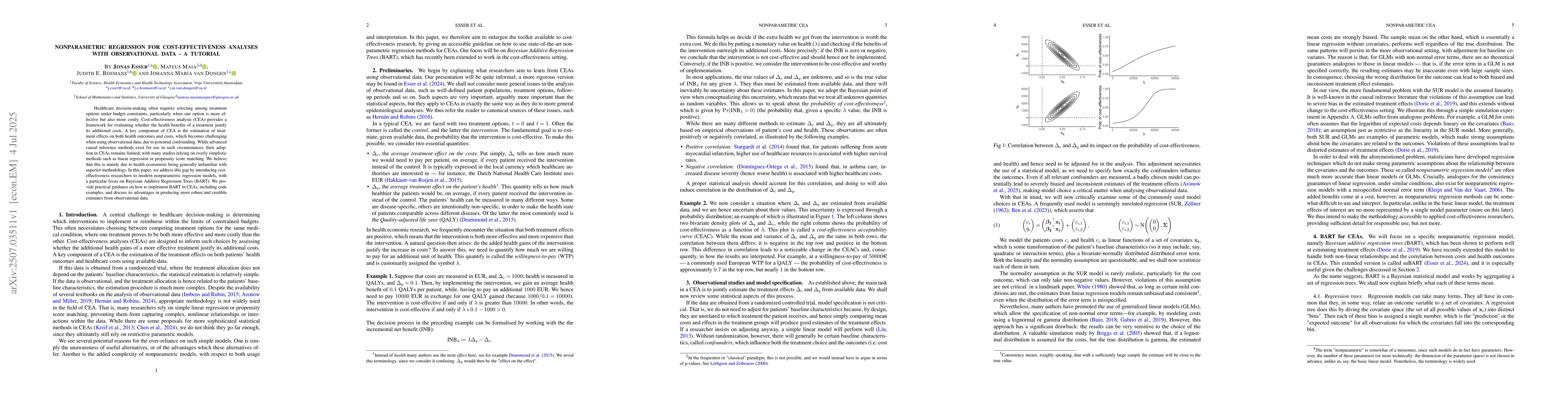 This paper introduces health economists to modern nonparametric regression models, specifically Bayesian Additive Regression Trees (BART), to improve cost-effectiveness analysis (CEA) using observational data. It provides practical guidance and code examples, emphasizing BART's robustness and credibility in estimating treatment effects on both health outcomes and costs, addressing common limitations of simpler methods.